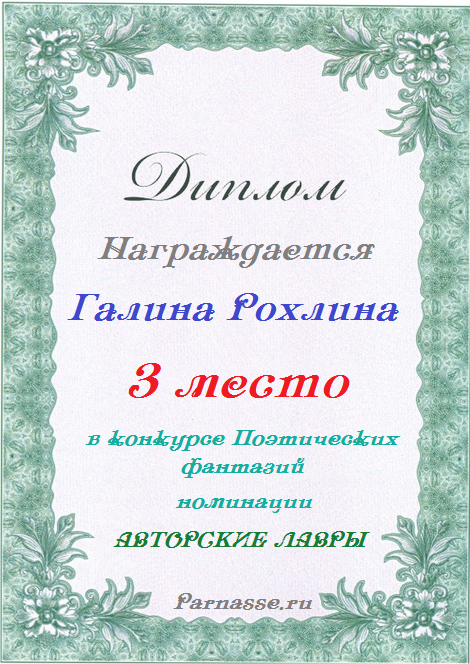Диплом за 3 место в конкурсе Поэтических фантазий в номинации "Авторские лавры"