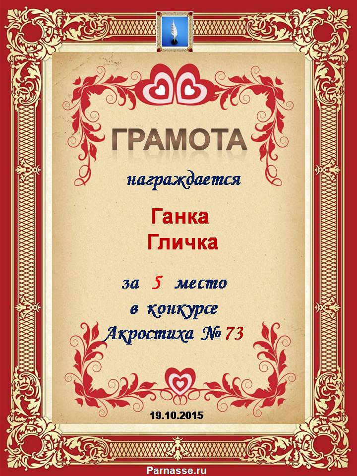 Грамота за 5 место в 108 конкурсе АКРОСТИХА (Альтернатива)! ПОЗДРАВЛЯЮ!