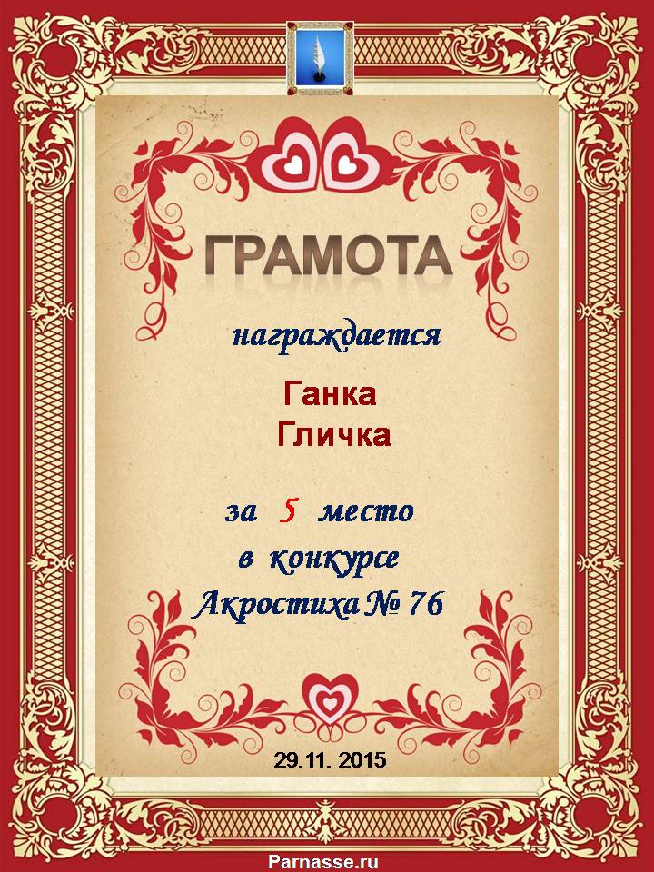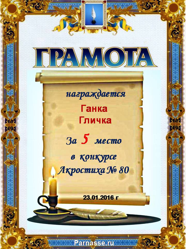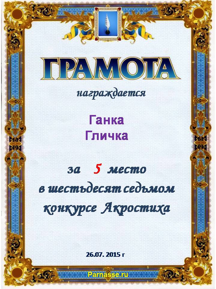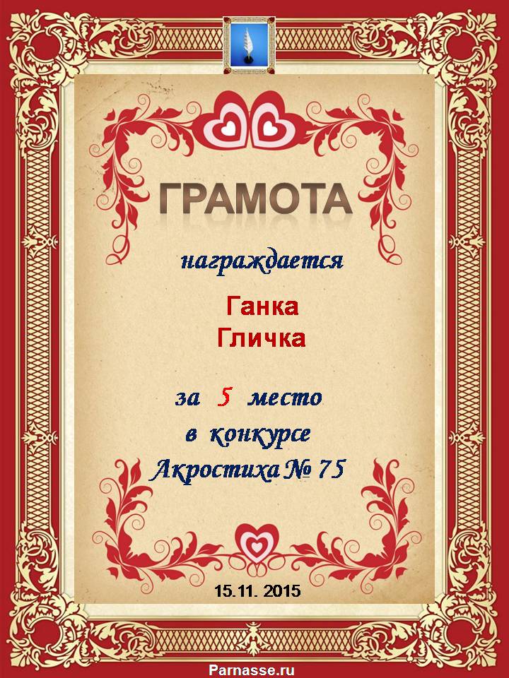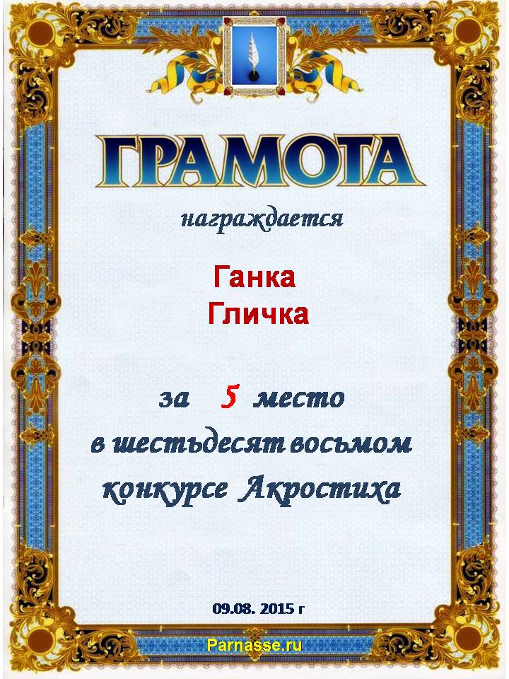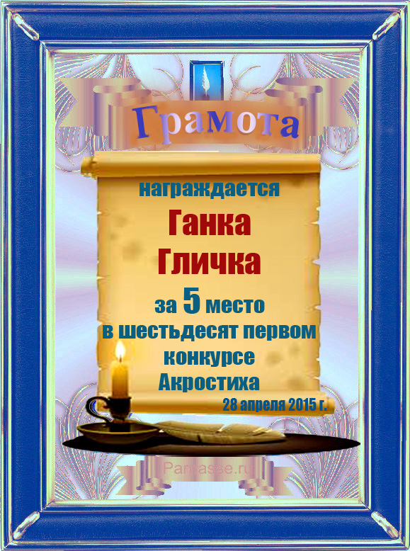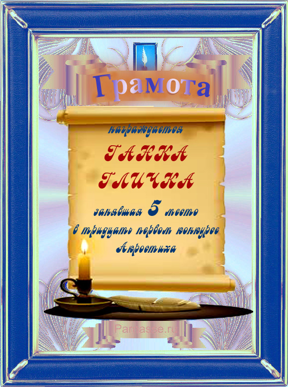 Грамота за 5 место в 97 конкурсе АКРОСТИХА (Альтернатива)! ПОЗДРАВЛЯЮ!