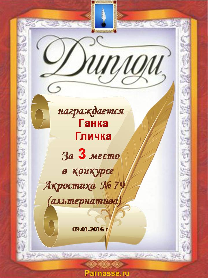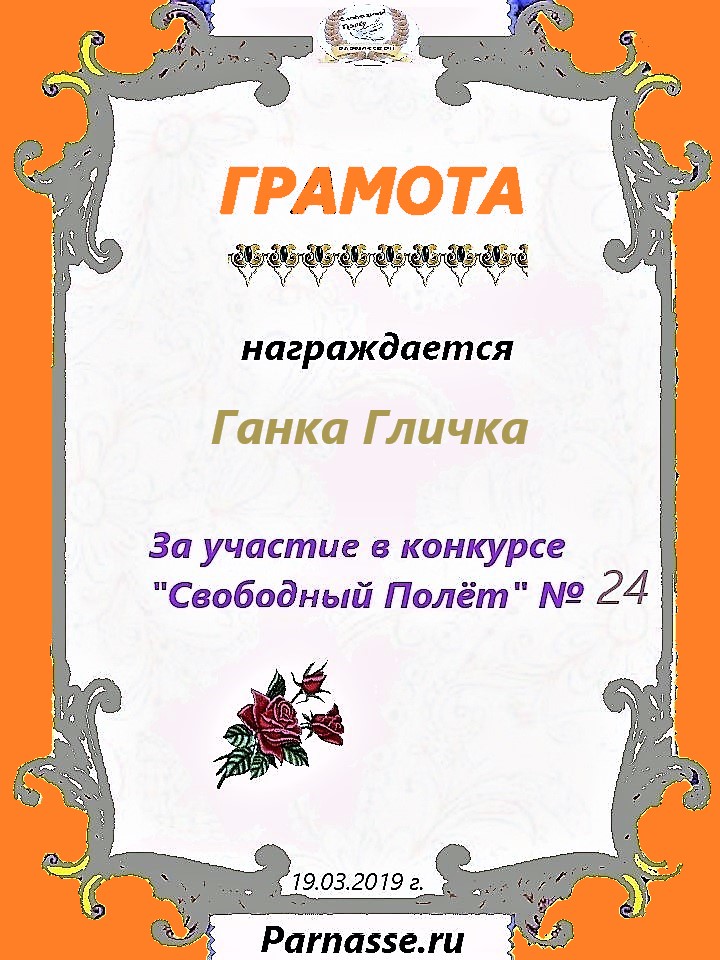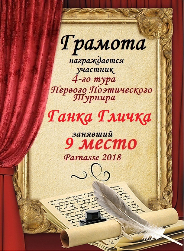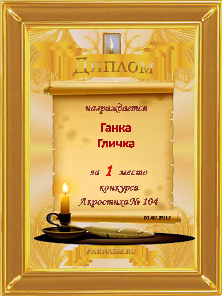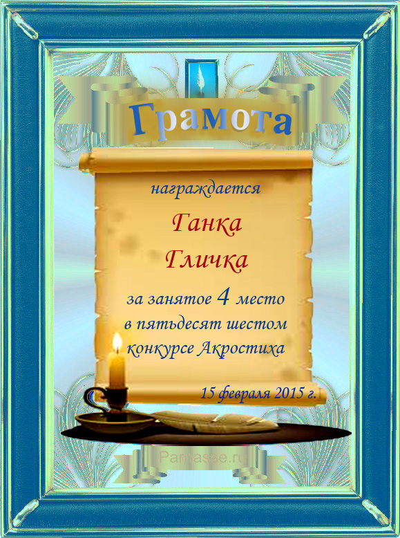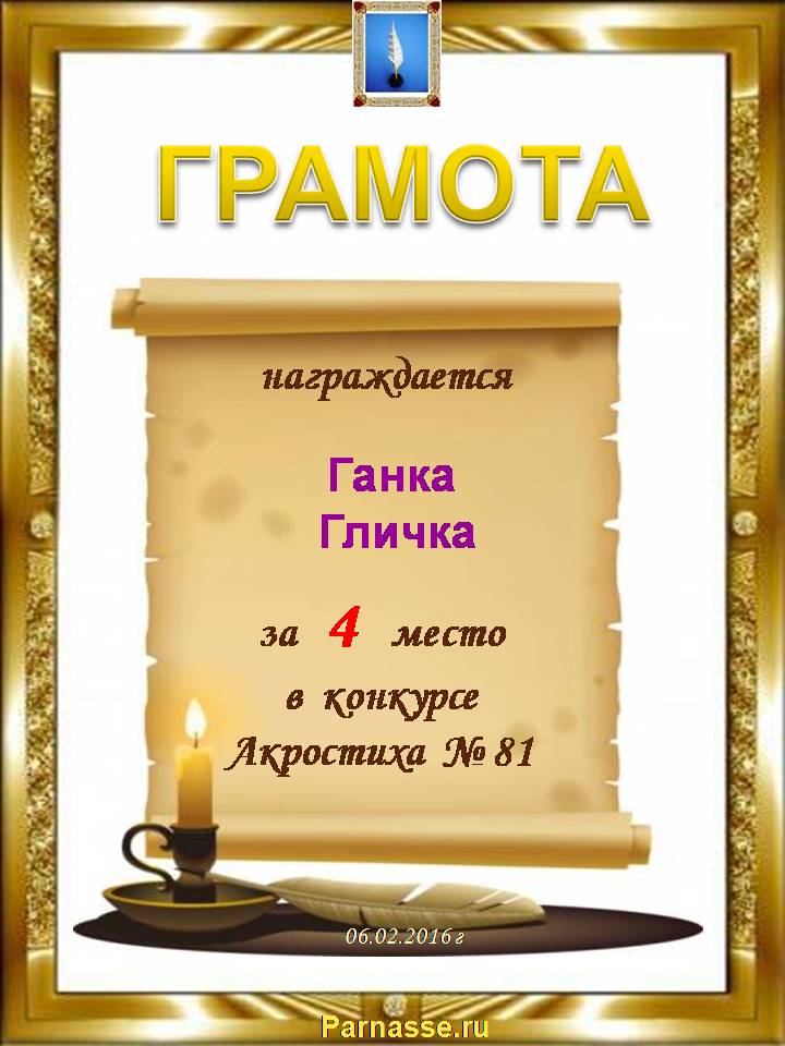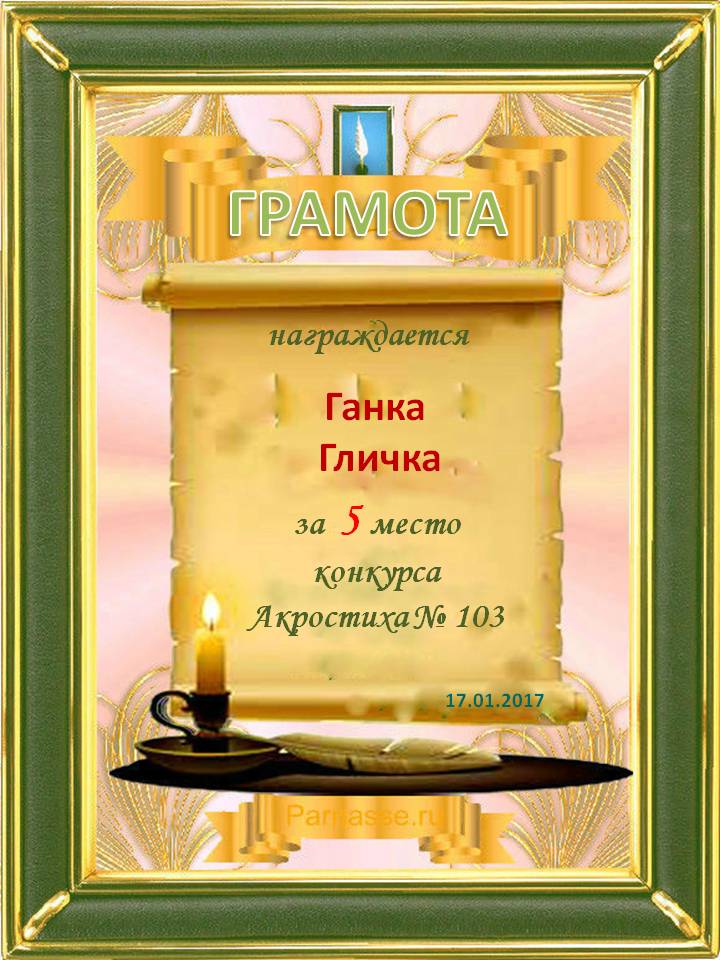 Грамота за 4 место в 103 конкурсе АКРОСТИХА (Альтернатива)! ПОЗДРАВЛЯЮ!