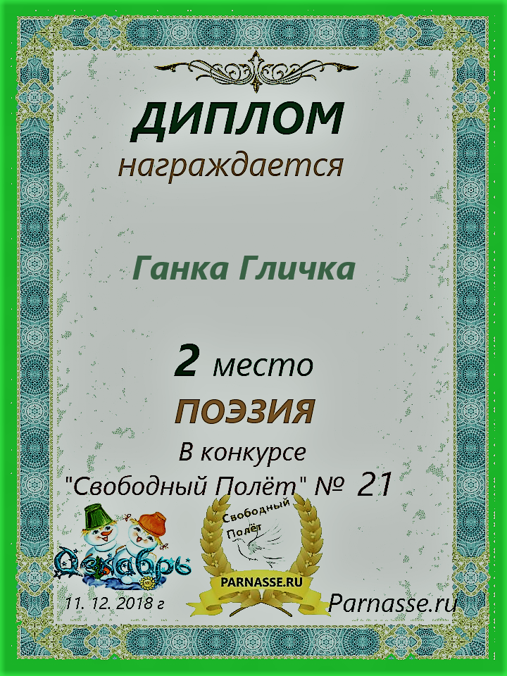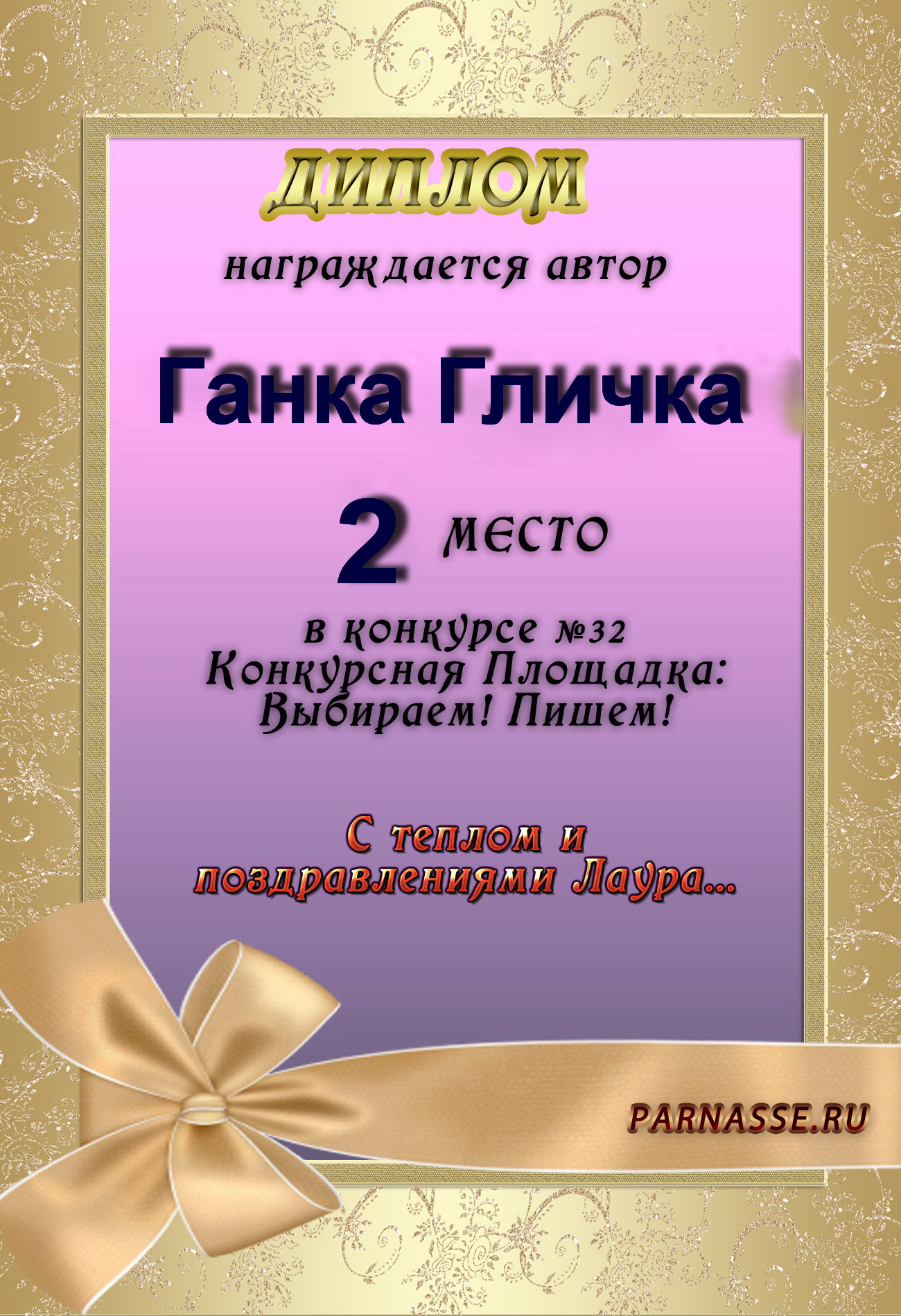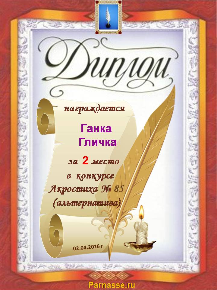 Диплом за 2 место в 116 конкурсе АКРОСТИХА (Альтернатива)! ПОЗДРАВЛЯЮ!