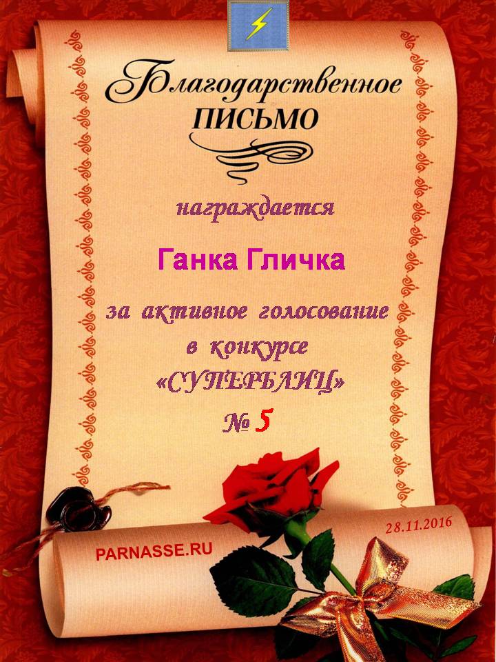 Благодарность за активное голосование в 5 конкурсе СУПЕРБЛИЦА!СПАСИБО БОЛЬШОЕ!