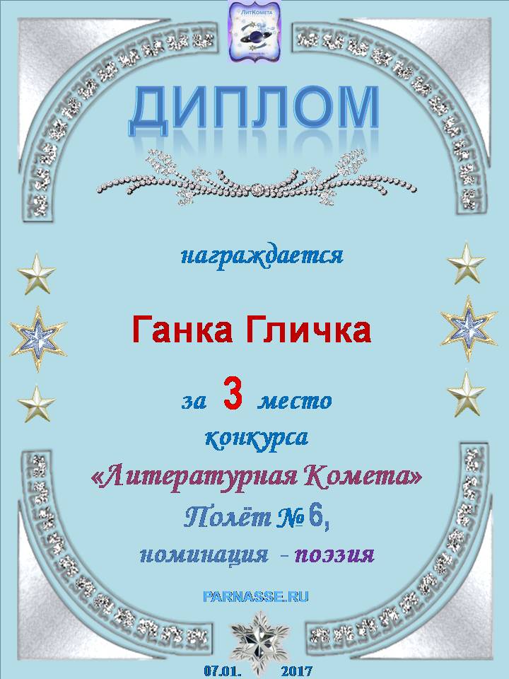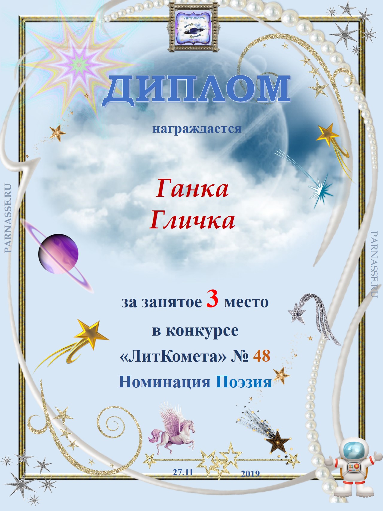 За 3 место - Номинация Поэзия, ЛитКомета, Полёт № 48