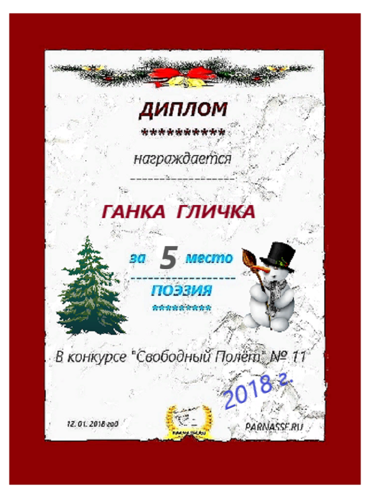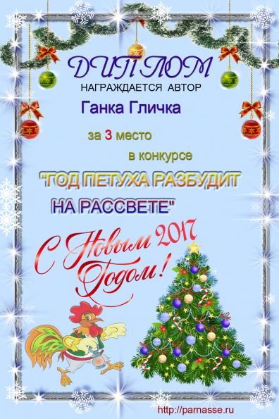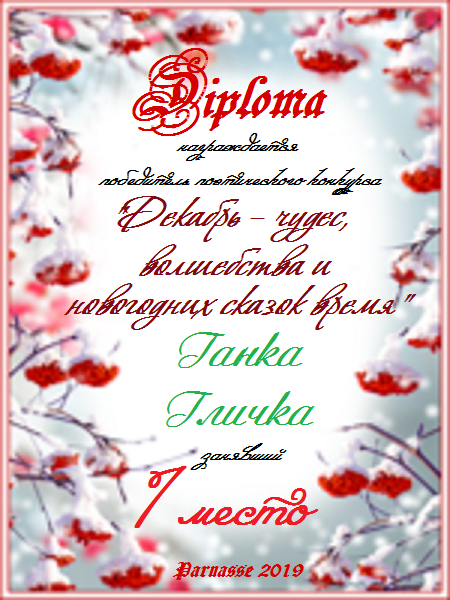 За участие в поэтическом конкурсе "Декабрь – чудес и новогодних сказок время", номинация "Декабрьская сказка". Пусть счастье, любовь, здоровье и удача будут вашими верными спутниками каждый день из года в год!
