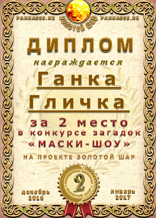 Диплом за 2 место в юбилейном конкурсе АКРОСТИХА № 100 (Альтернатива)! ПОЗДРАВЛЯЮ!