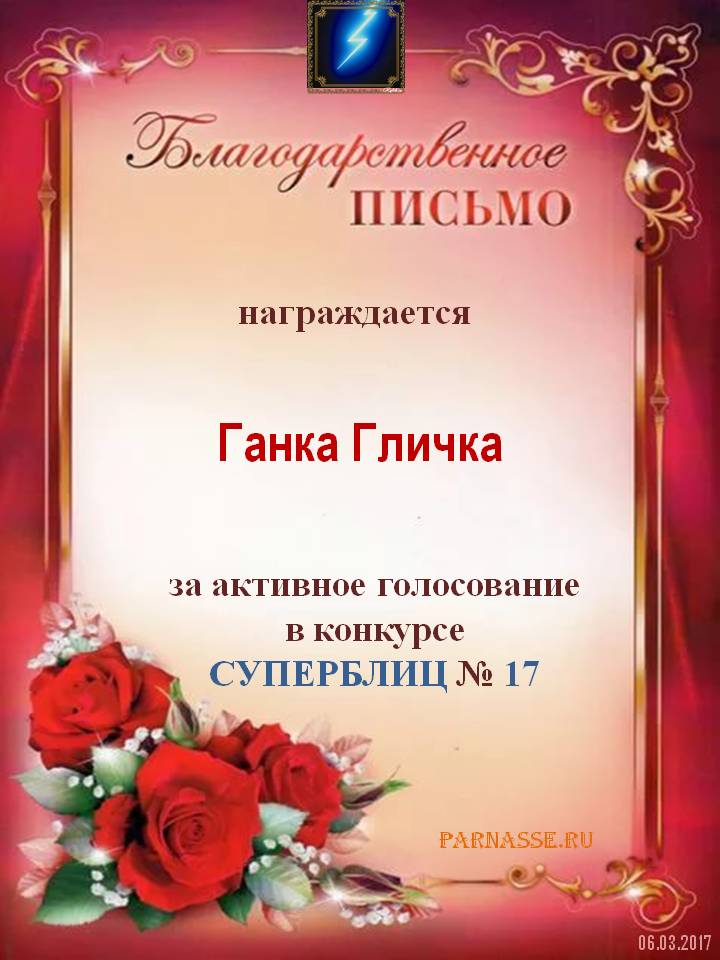 Благодарность за активное голосование в 17 конкурсе СУПЕРБЛИЦА!СПАСИБО БОЛЬШОЕ!