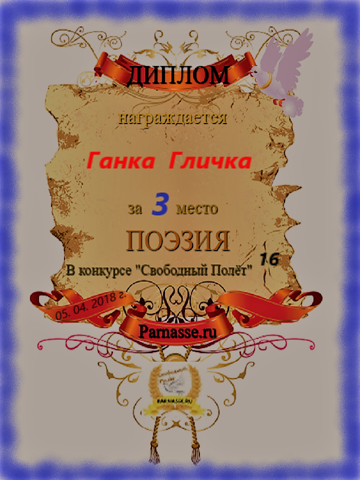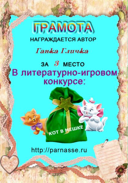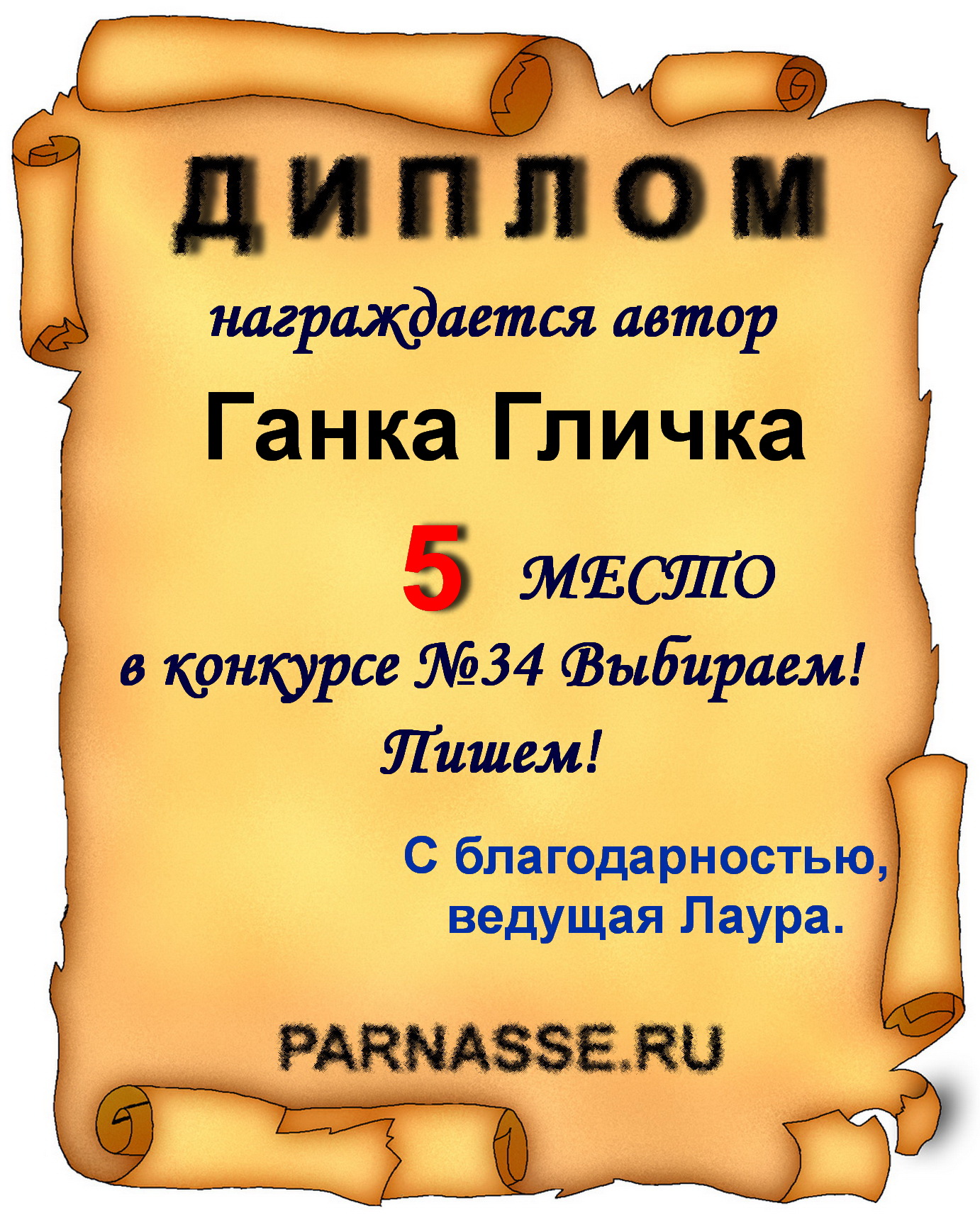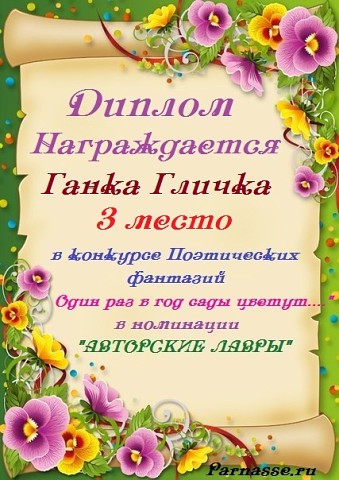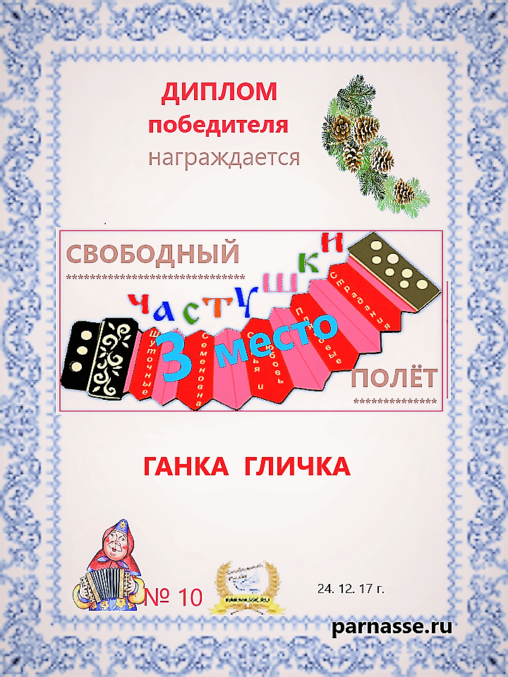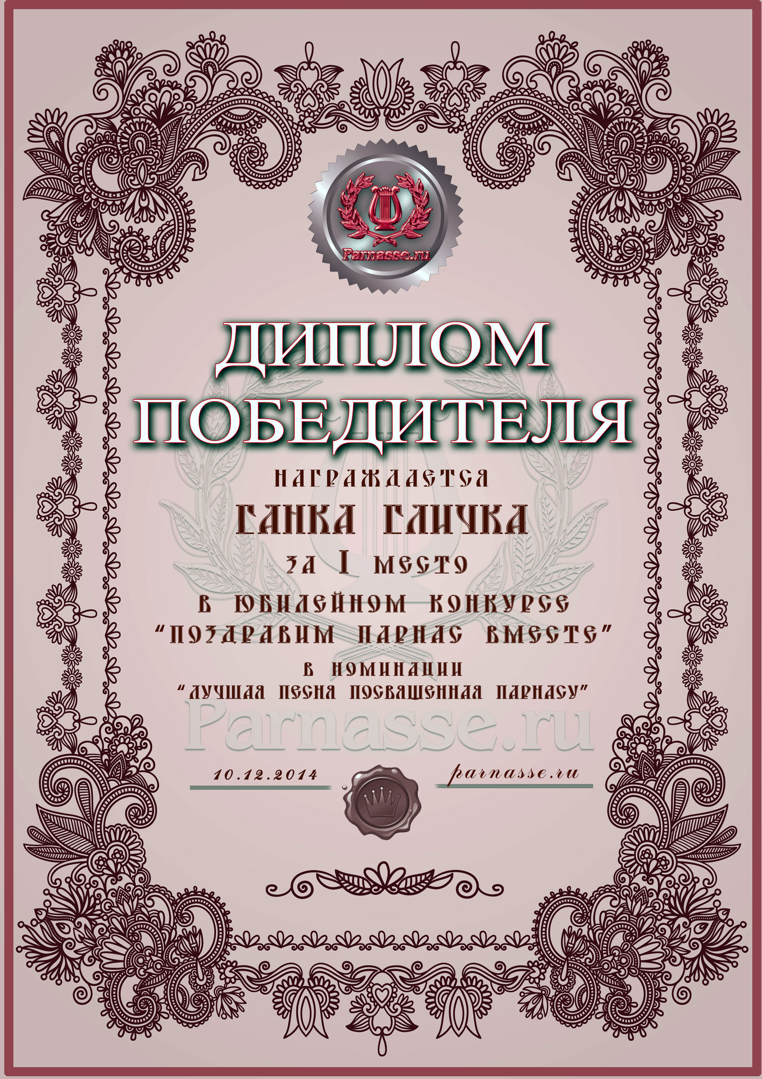 Диплом за 1 место в праздничном конкурсе "Поздравим Парнас с трёхлетием вместе!"