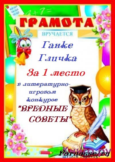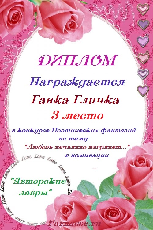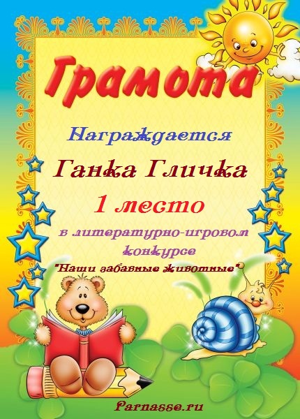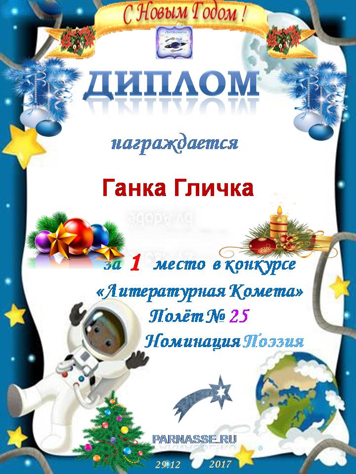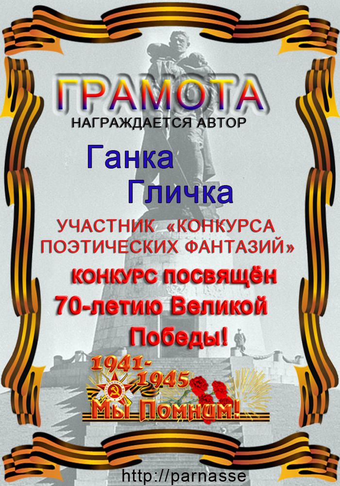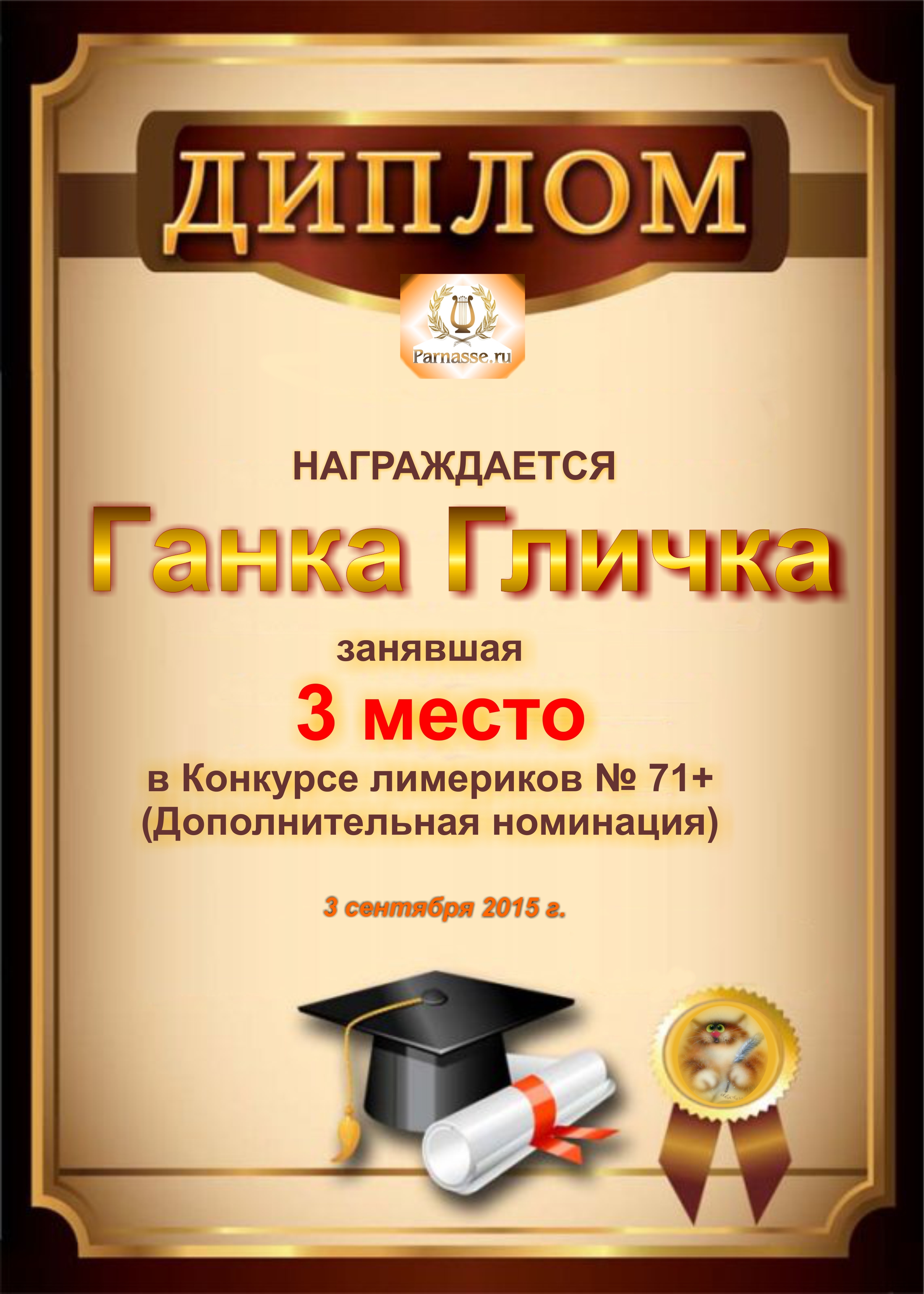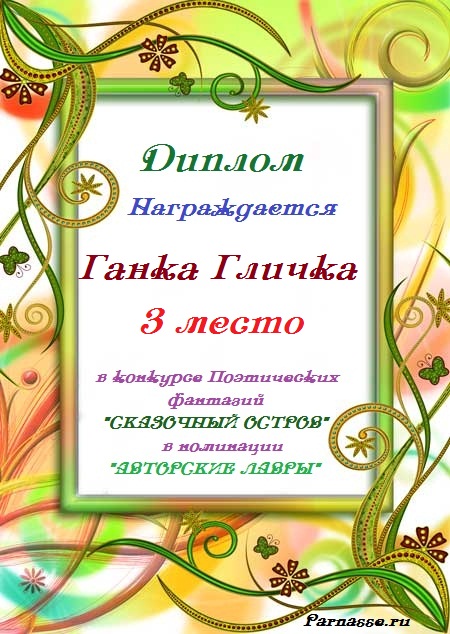 Диплом за 1 место в праздничном конкурсе "Поздравим Парнас с трёхлетием вместе!"
