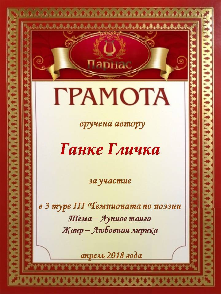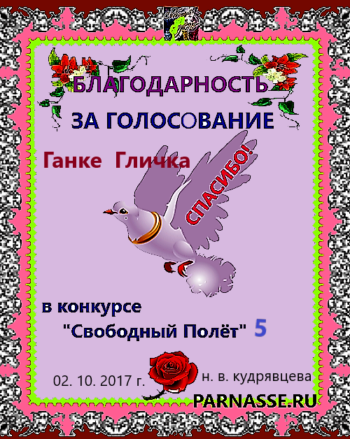 Номинация "Лучшее стихотворное поздравление Парнасу".Уважаемая Ганка!