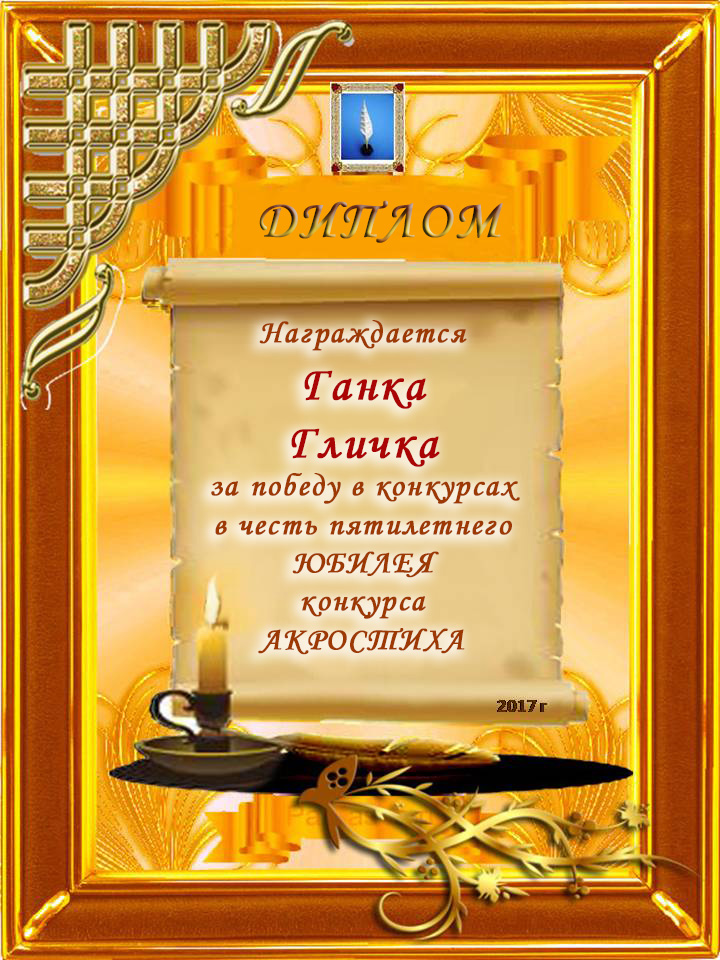 Диплом победителю в конкурсах Акростиха в связи с пятилетием конкурса Акростиха!