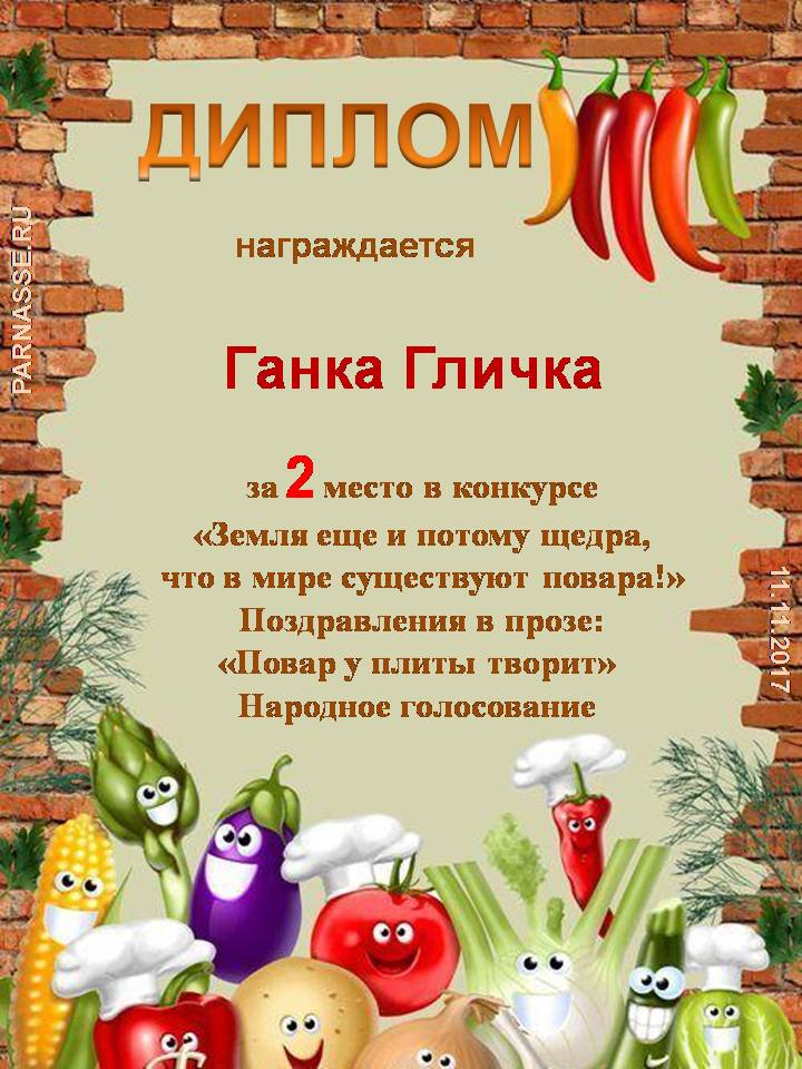 Поздравляем со 2 местом! Номинация: Поздравления в стихах: Поварам честь и хвала! - народное голосование.