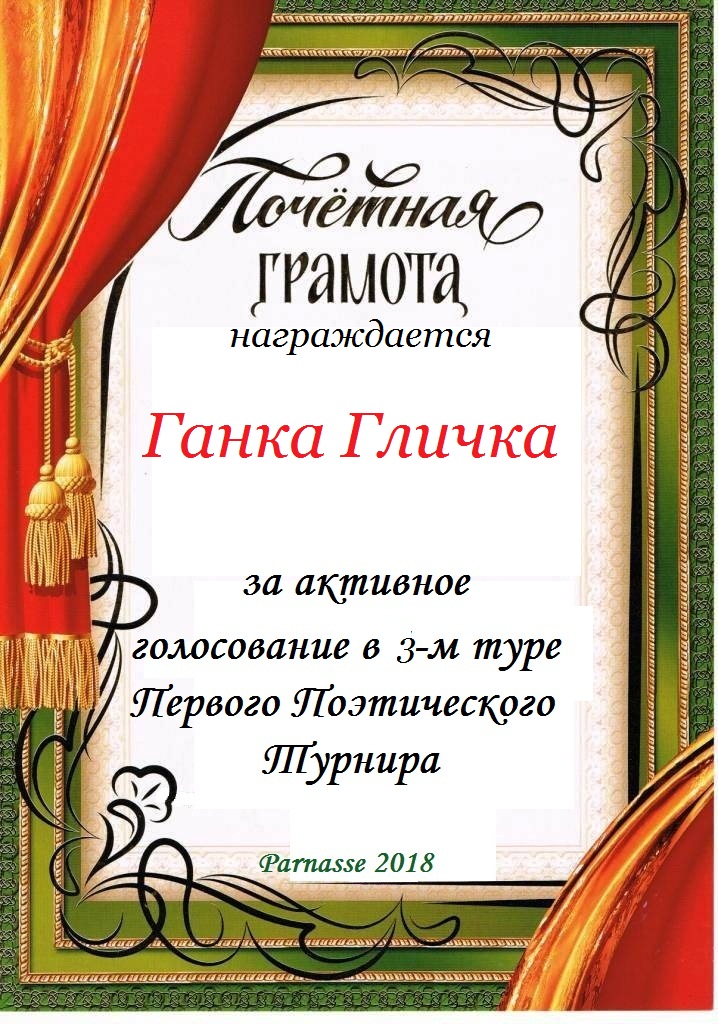 За активное участие в обсуждении конкурсных произведений 3-го тура Первого Поэтического Турнира «Стихи с эпиграфами». Спасибо за поддержку!
