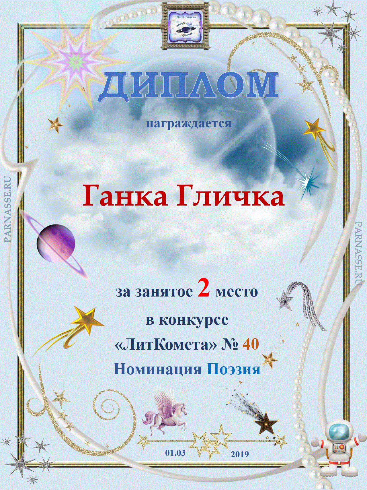 За 2 место - Номинация Поэзия, ЛитКомета, Полёт № 40