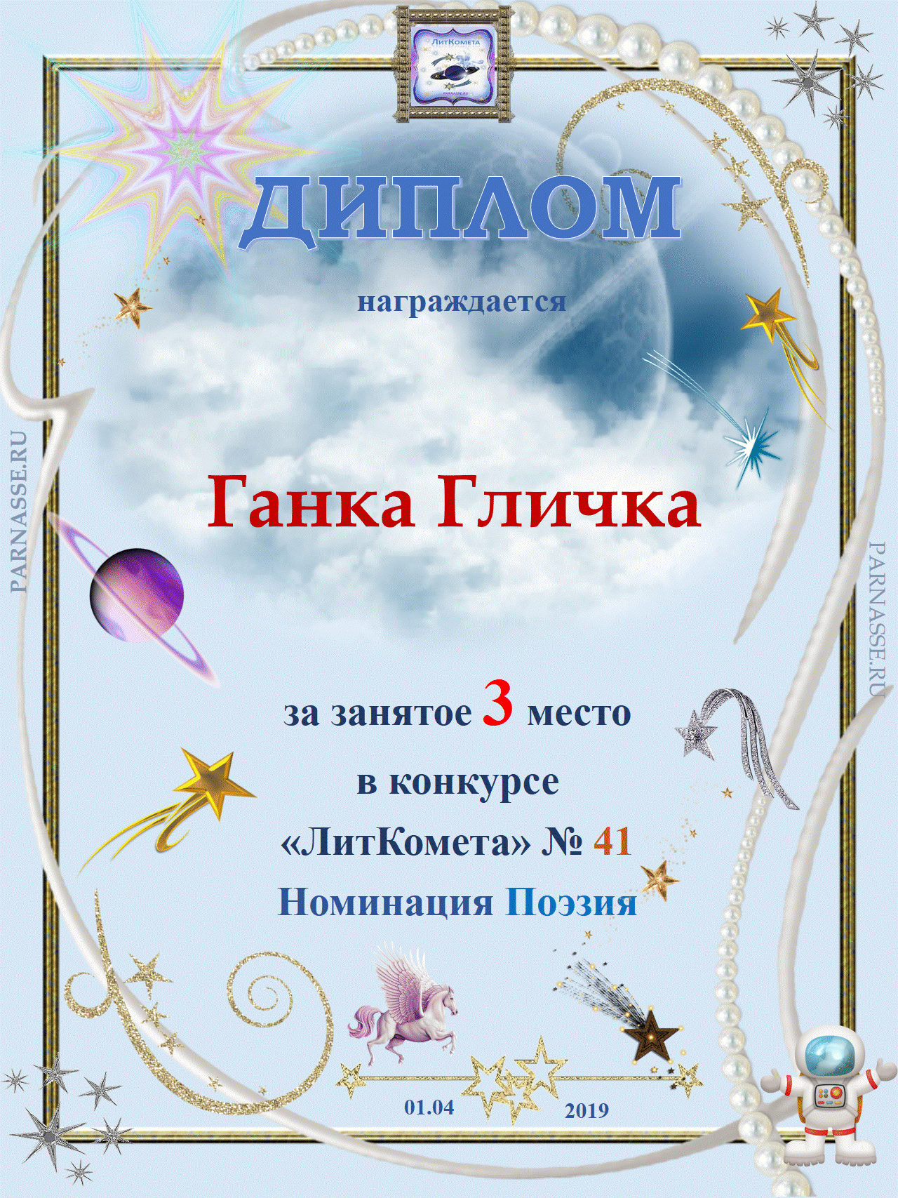 За 3 место - Номинация Поэзия, ЛитКомета, Полёт № 41