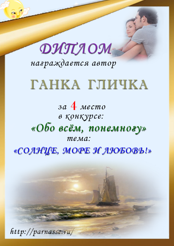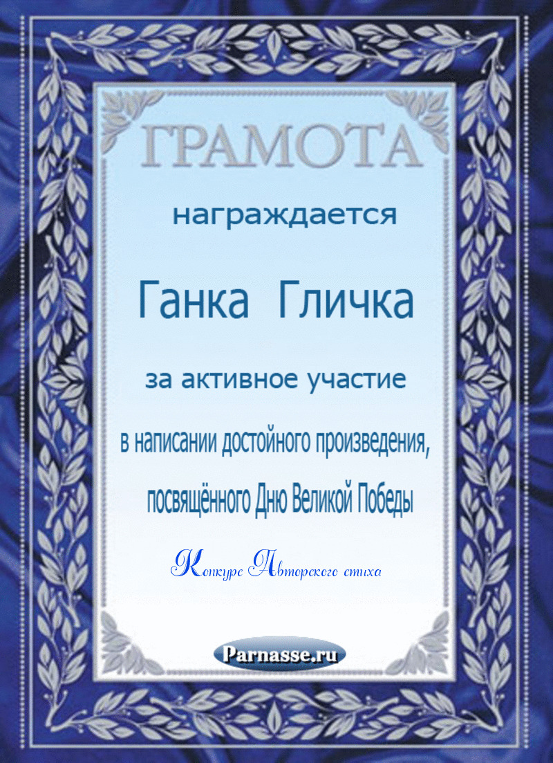 Номинация "Лучшая поздравительная песнь Парнасу". Разрешите Вас поблагодарить за великолепные, преисполненные тепла и добра песни, адресованные в эту замечательную дату нашему любимому сайту. Три года – это не срок, но дата! "Парнас" стал на ноги, но без таких авторов как Вы, это было бы невозможно! Спасибо Вам за все, будьте всегда жизнерадостны, любимы, добры и счастливы, а Ваше прекрасное творчество пусть регулярно радует наш слух и душу! Будьте здоровы!