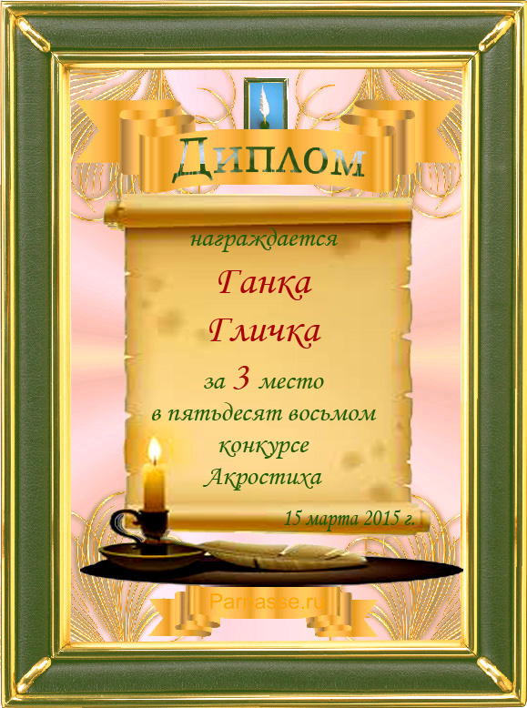 Диплом за 2 место в 123 конкурсе АКРОСТИХА (Альтернатива)! ПОЗДРАВЛЯЮ!