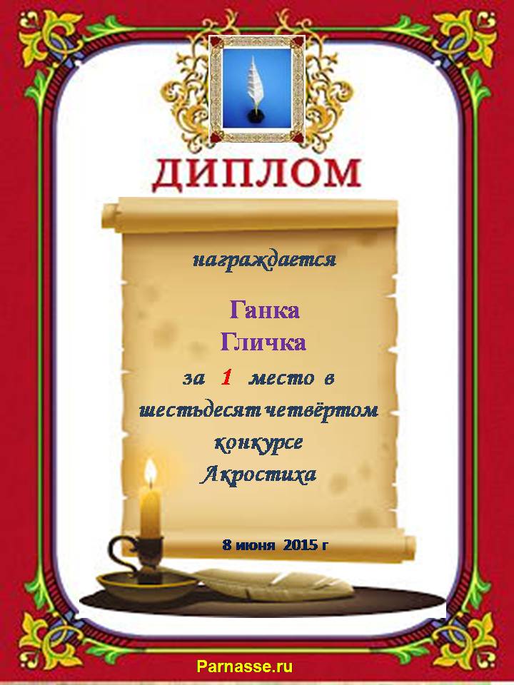 Диплом за 1 место в 113 конкурсе АКРОСТИХА (Альтернатива)! ПОЗДРАВЛЯЮ!
