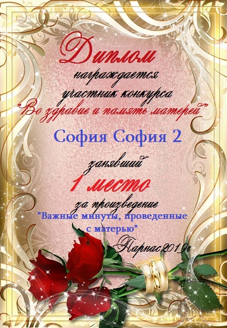Первое место по итогам конкурса "Я руки мамины целую". Поздравляем с прекрасной победой!