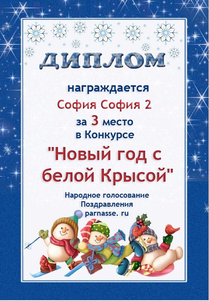 За 3 место в Конкурсе "Новый год с белой Крысой". Народное голосование. Поздравления в стихах. Поздравляем!