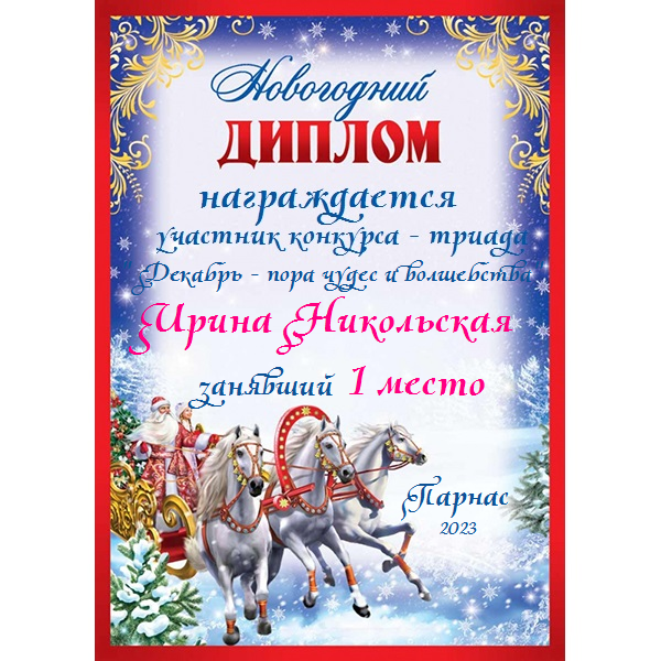 Первое место по итогам конкурса - триада "Декабрь - пора чудес и волшебства"