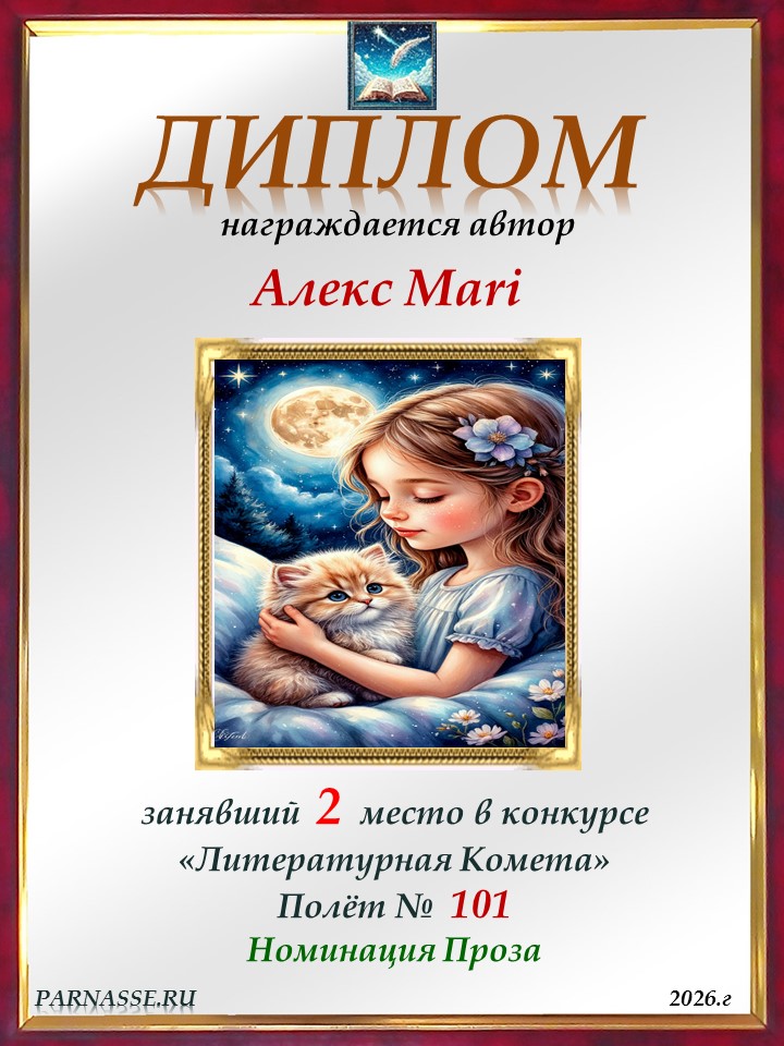 Поздравляю с занятым 2 местом в конкурсе "ЛитКомета-Полёт № 72" - Номинация Проза!