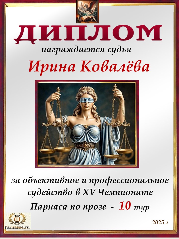 Медаль судьи в 10 туре XV Чемпионата Парнаса по прозе