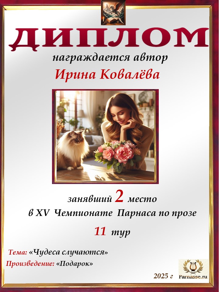 Поздравляю с занятым 2 местом в IX Чемпионате Парнаса по прозе – 8 тур (судейское голосование)
