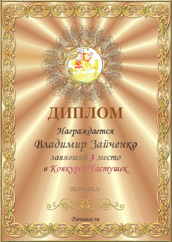 От лица Администрации творческого портала "Парнас" вручаем Вам этот памятный знак с самыми наилучшими пожеланиями! Пусть Вас весь год не покидает творческий запал, удача, а здоровье будет столь же крепким и нерушимым, как и традиция Новогоднего праздника! Счастья, успехов и любви Вам и Вашей семье, друзьям и близким!