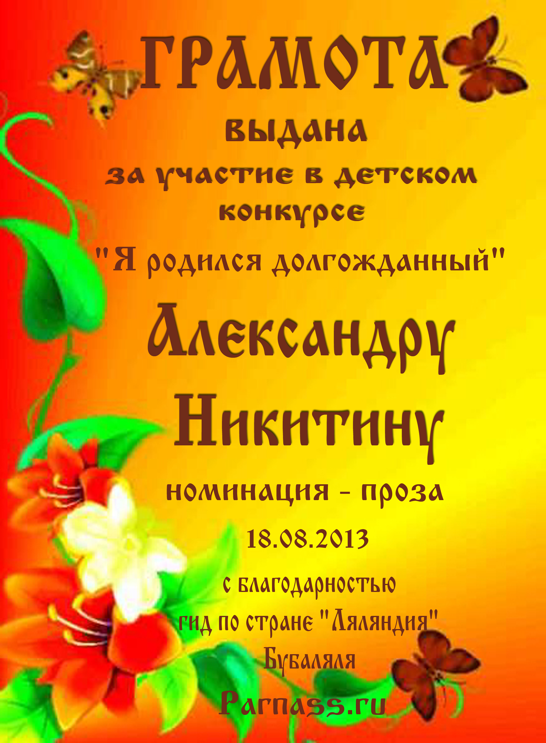 Подарок от: Детский конкурс ЛЯЛЯНДИЯ, 10 мая 2014: