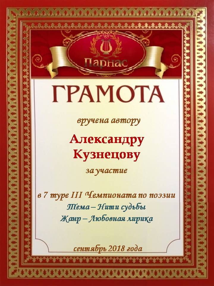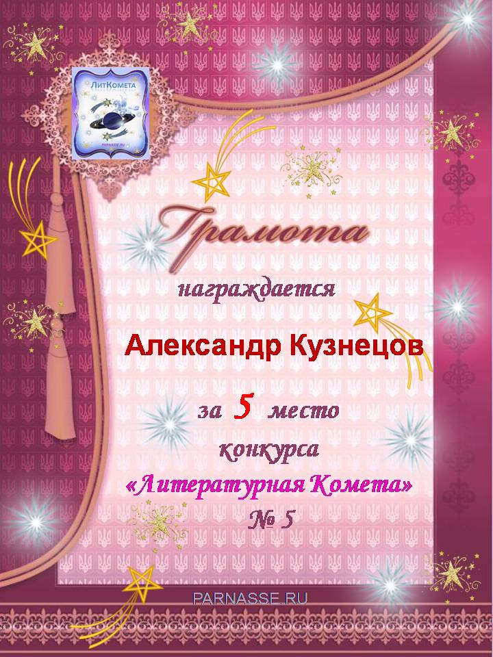 за пятое место в номинации стихотворной лирики Рождественского фестиваля