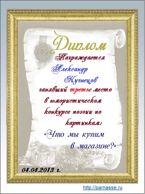 ![]() Бронзовая Медаль «Гордость Парнаса»!