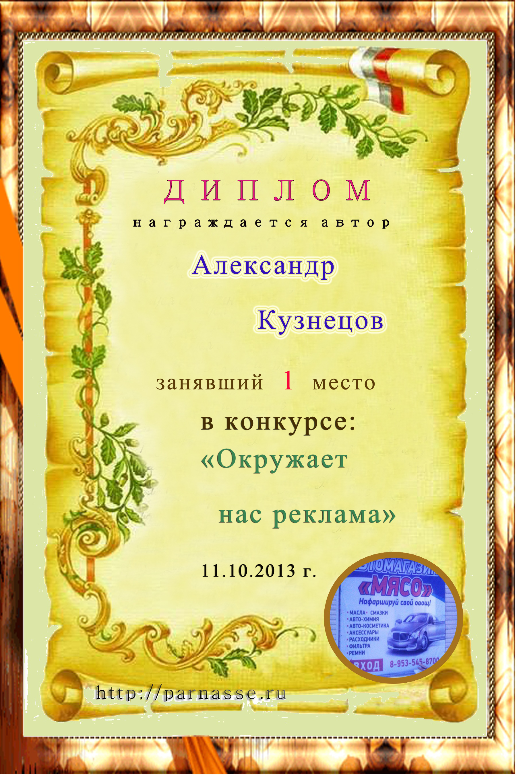 Диплом победителя конкурса "О Победе с гордостью, о павших с почтением"