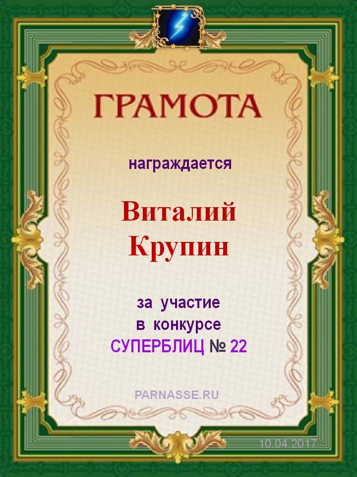 Грамота за участие в конкурсе СУПЕРБЛИЦА № 22!