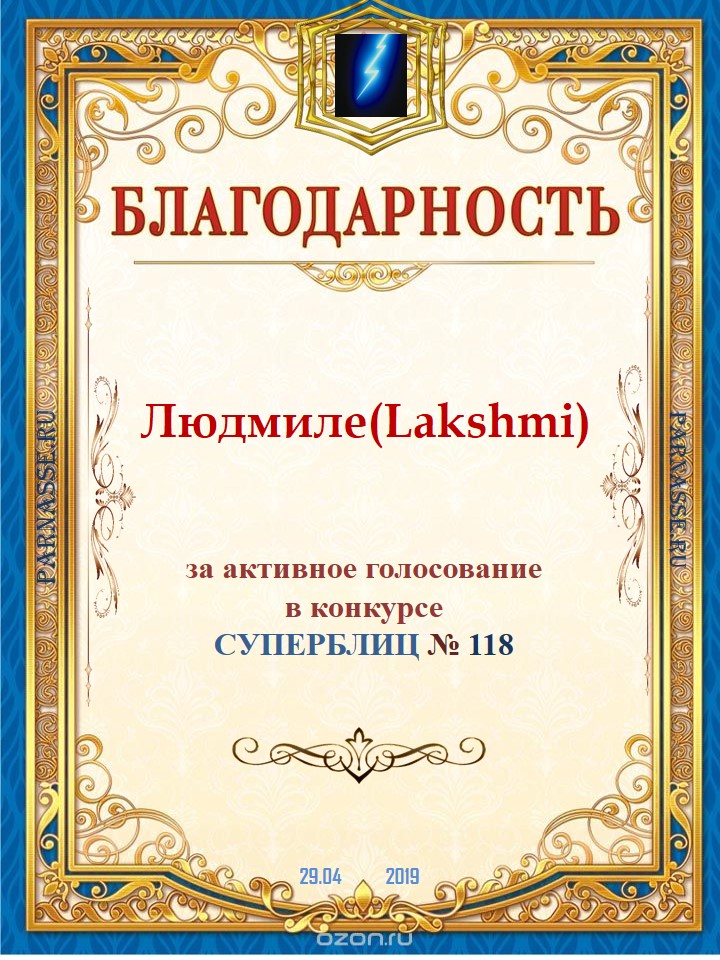 Благодарность за активное голосование в 118 конкурсе СУПЕРБЛИЦА!СПАСИБО БОЛЬШОЕ!