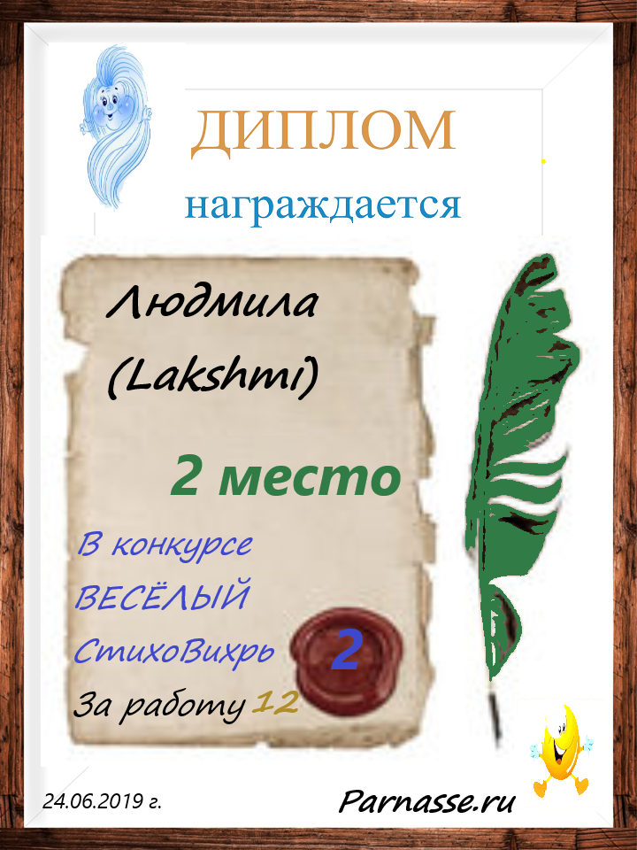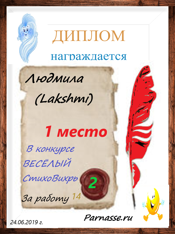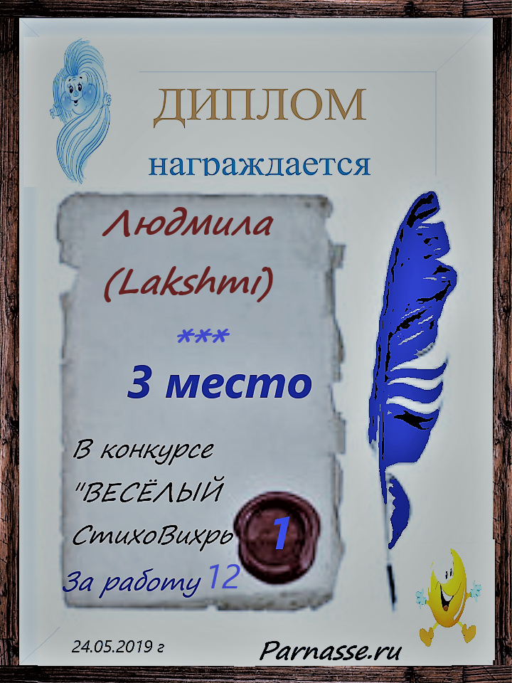 ![]() золотая медаль за 1 место в конкурсе "ВЕСЁЛЫЙ СтихоВихрь" № 2