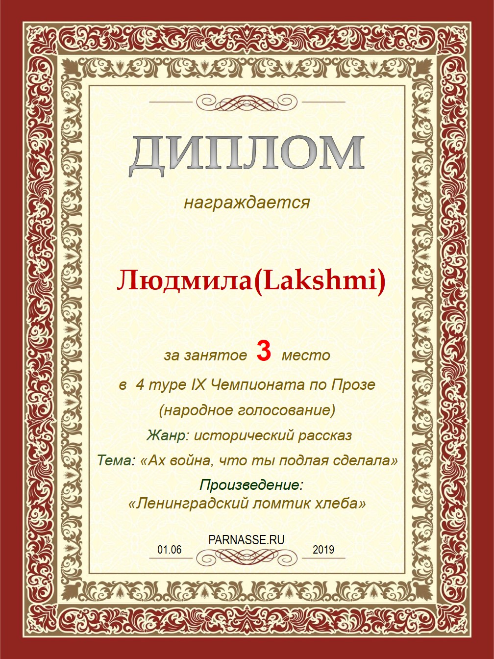Поздравляю с занятым 3 местом в 4 туре IX Чемпионата Парнаса по Прозе - народное голосование!