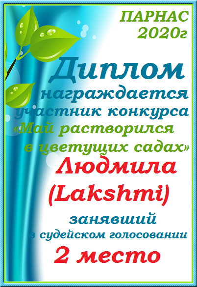 За участие в обеих номинациях конкурса «Май растворился в цветущих садах». Поздравляем!