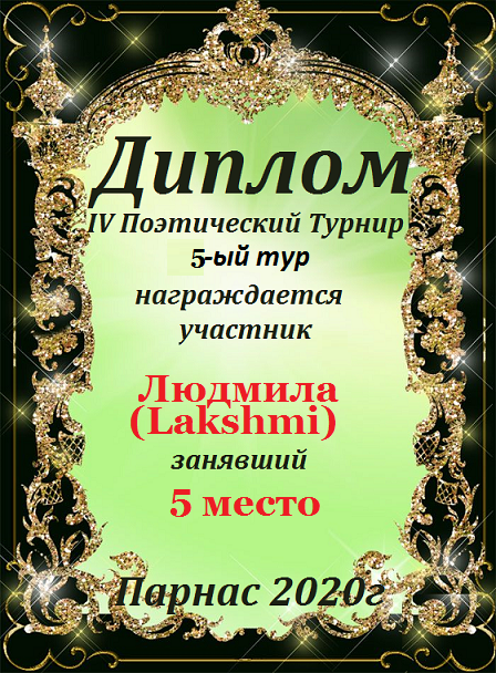 ![]() Медаль за 5-е место «Четвёртого Поэтического Турнира»