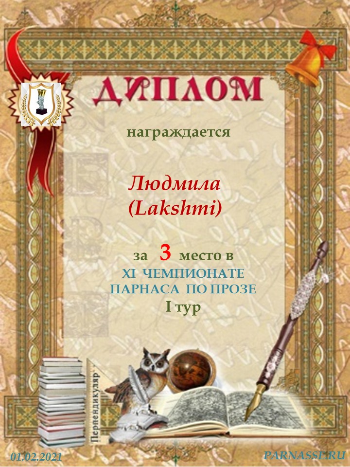 Поздравляю с занятым 3 местом в 1 туре XI Чемпионате Парнаса по Прозе!