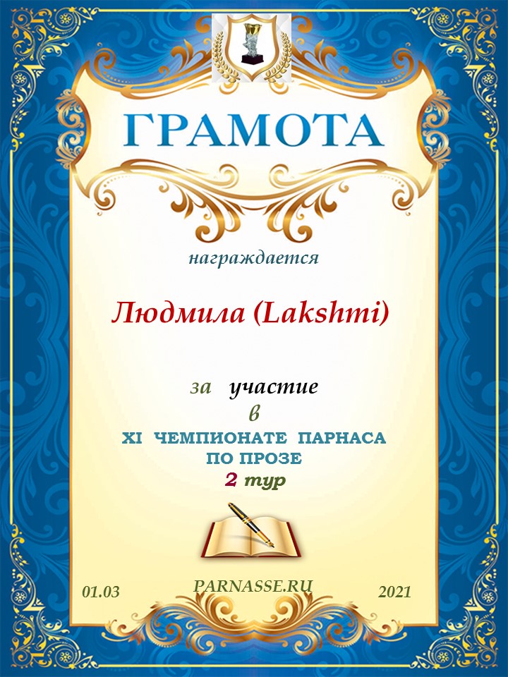 ![]() Медаль за 3 место во 2 туре XIII Чемпионата Парнаса по прозе