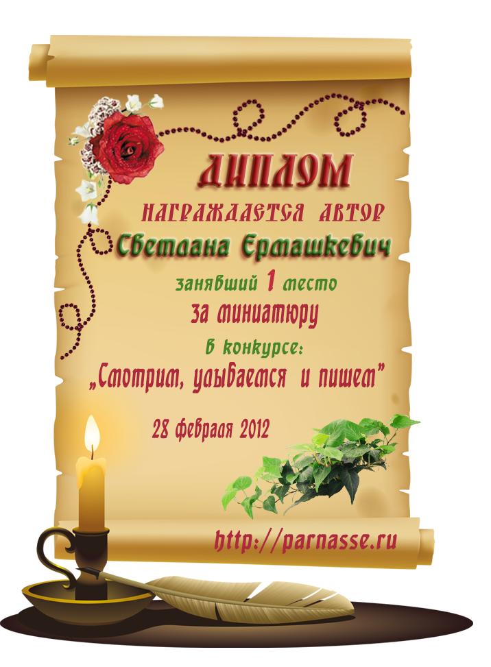 Диплом за 1 место в конкурсе "Смотрим, улыбаемся и пишем"