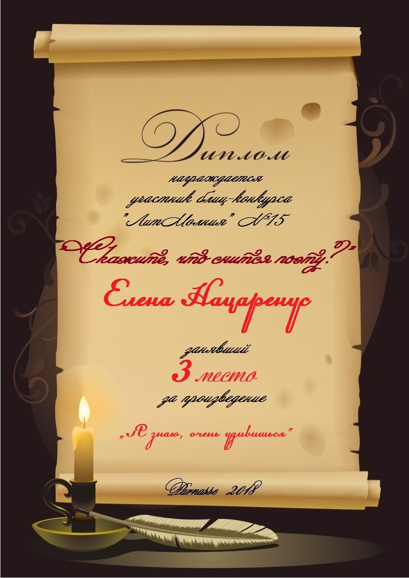 Третье место по итогам литературного конкурса «Яркий штрих уходящего года», судейское голосование. Поздравляем с прекрасной победой!