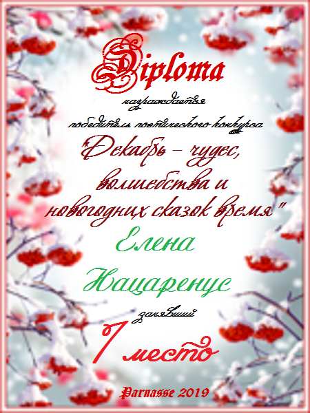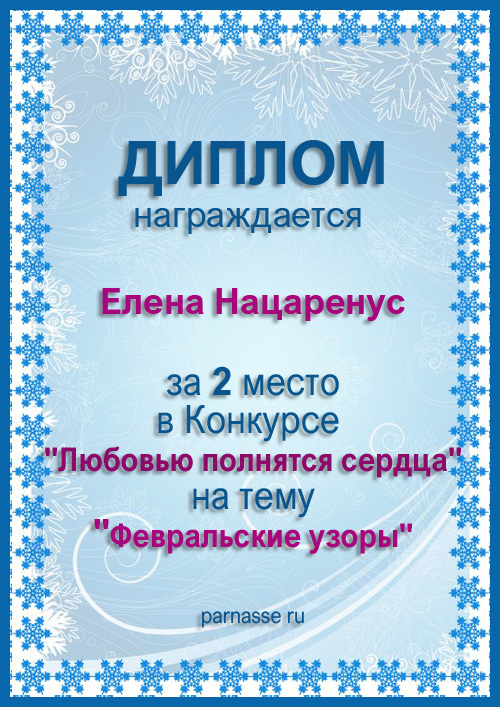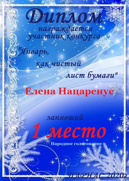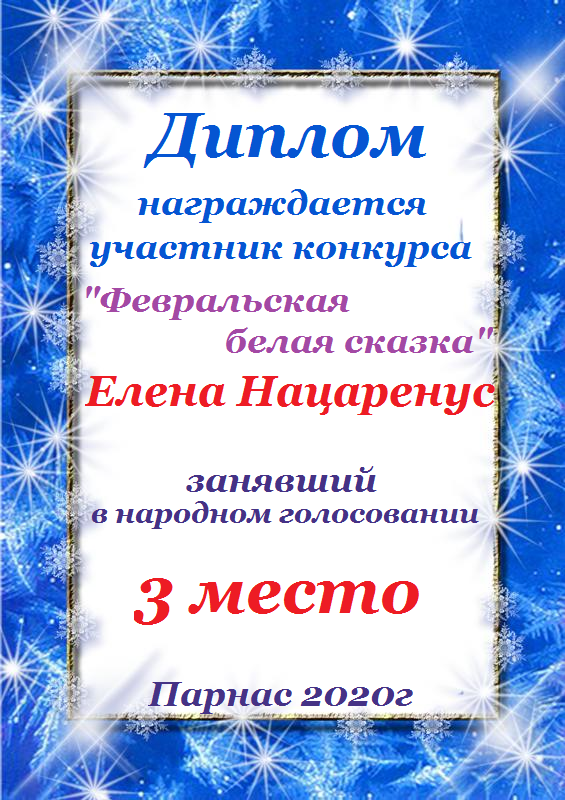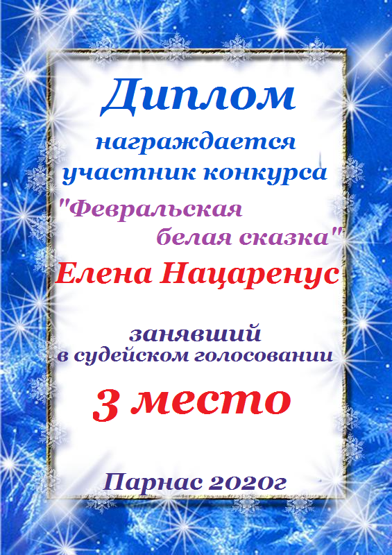 Третье место по итогам литературного конкурса «Самый красивый месяц зимы», судейское голосование. Поздравляем с прекрасной победой!