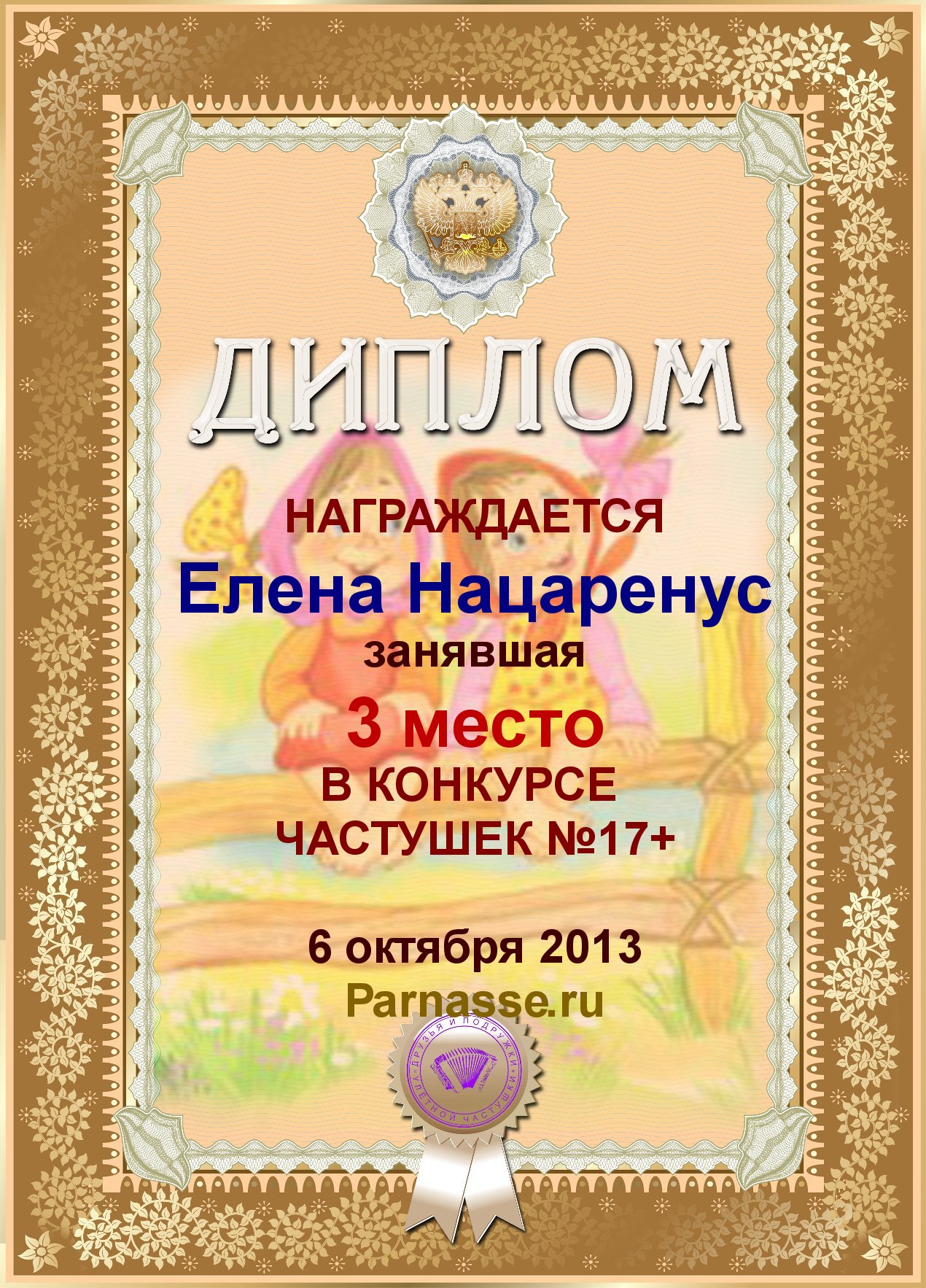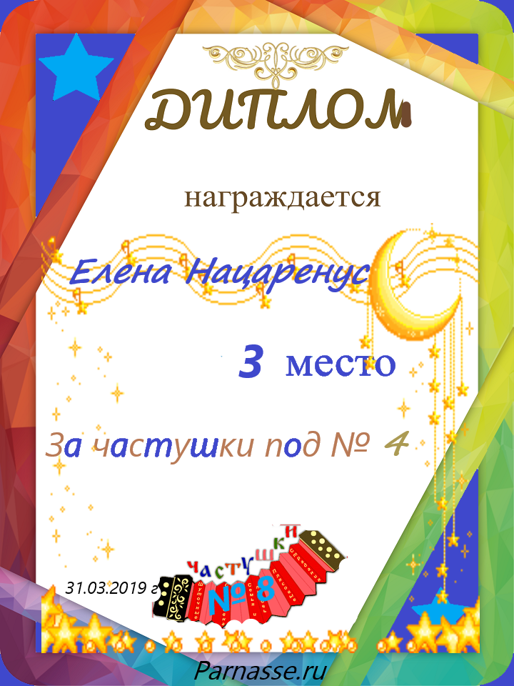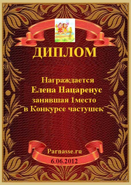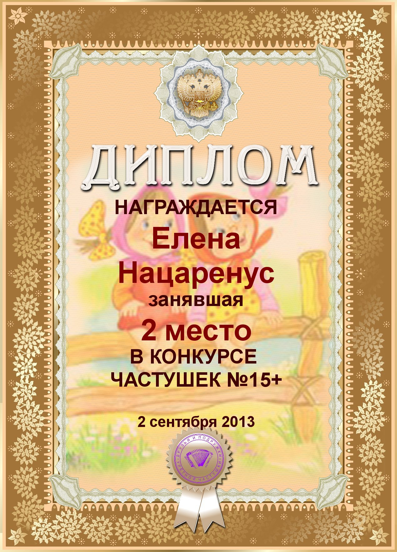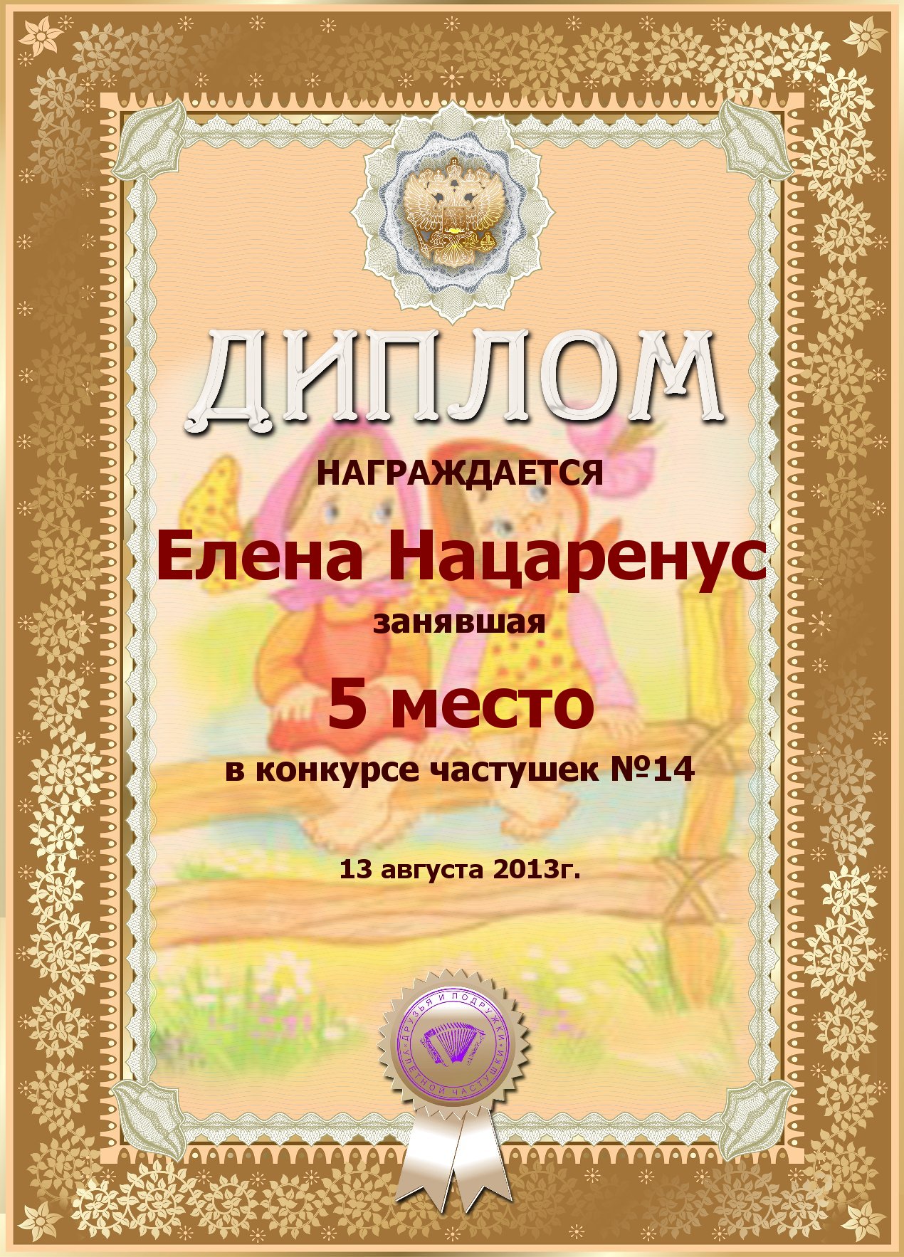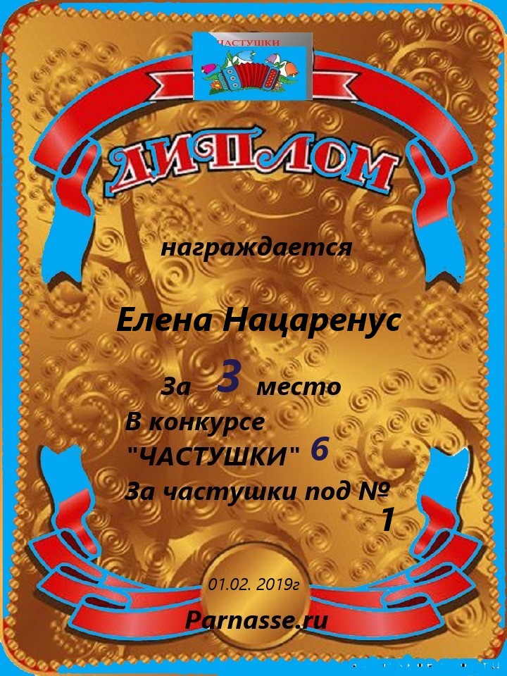ЕЛЕНА, ПОЗДРАВЛЯЮ ВАС С ПОЧЕТНЫМ 5 МЕСТОМ В КОНКУРСЕ ЧАСТУШЕК №9++