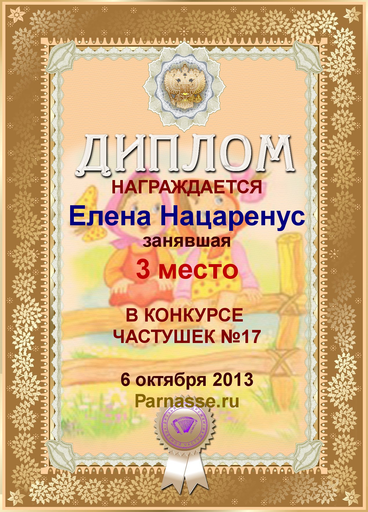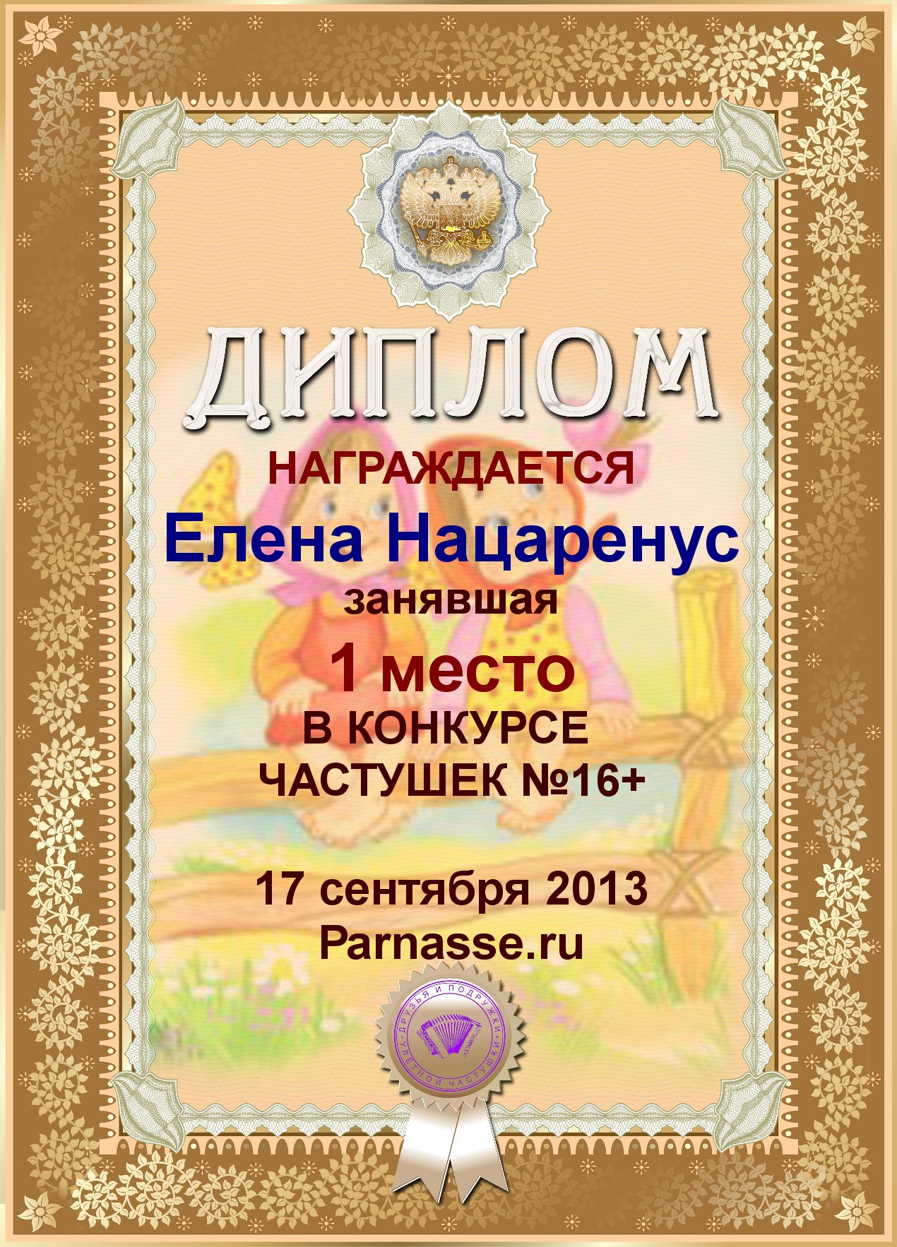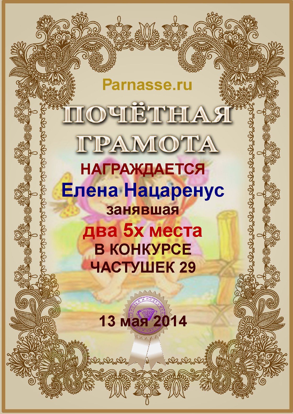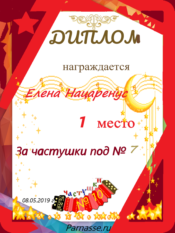 ЕЛЕНА, ПОЗДРАВЛЯЮ ВАС С ПОЧЕТНЫМ 5 МЕСТОМ В КОНКУРСЕ ЧАСТУШЕК №9++