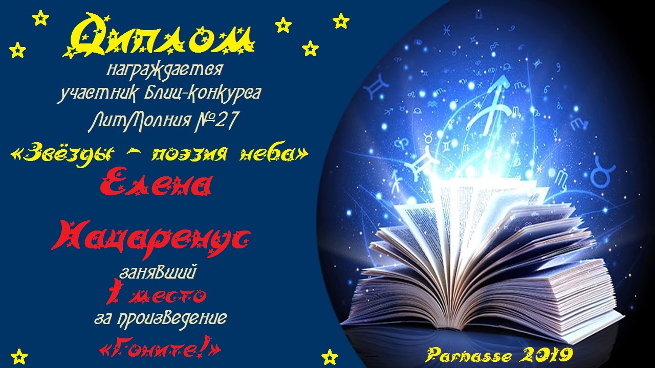 Поздравляю с занятым 1 местом в конкурсе "Литературная Комета - Полёт № 54" - Номинация Поэзия!