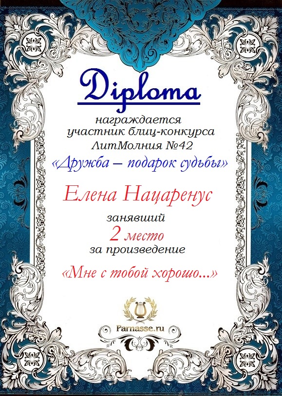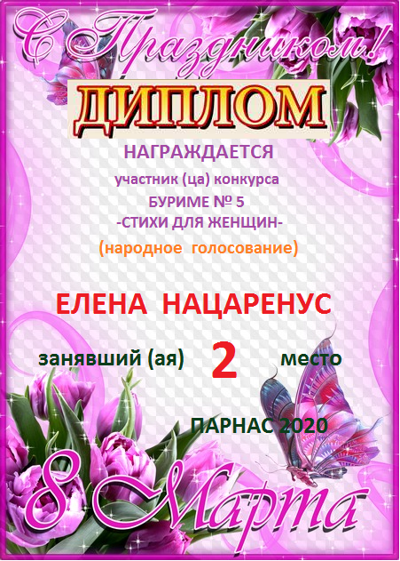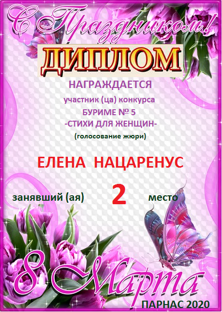 Диплом за 2 место в 139 конкурсе АКРОСТИХА (Альтернатива)! ПОЗДРАВЛЯЮ!