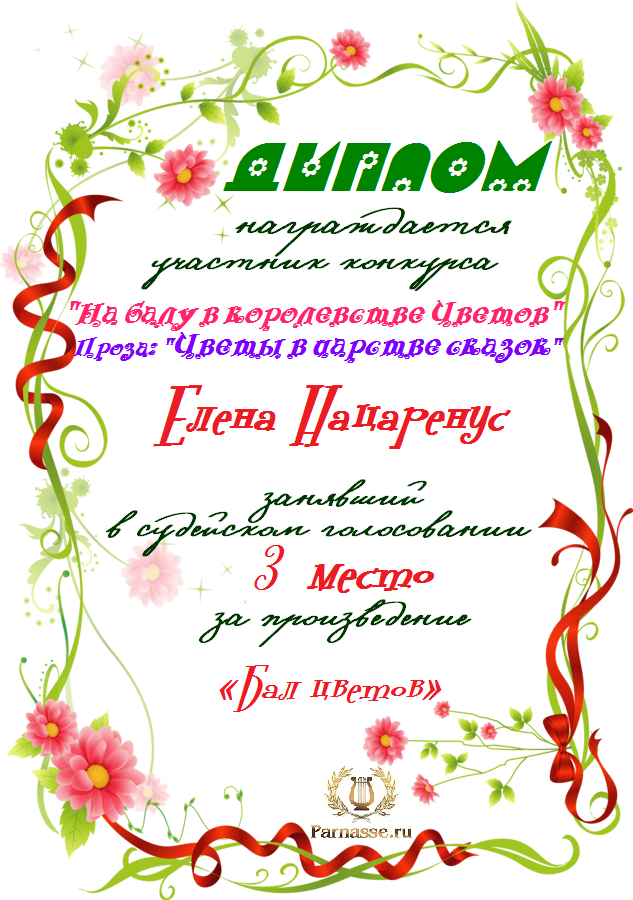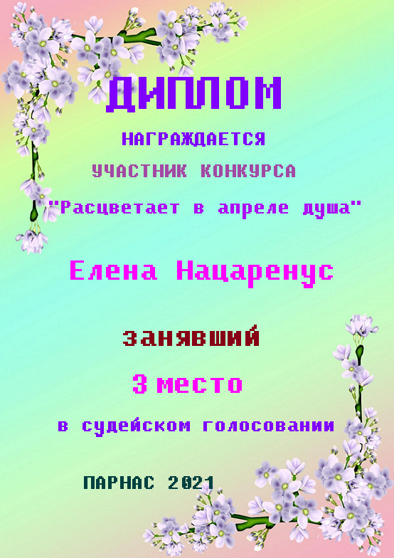 Третье место в судейском голосовании по итогам конкурса "Расцветает в апреле душа"
