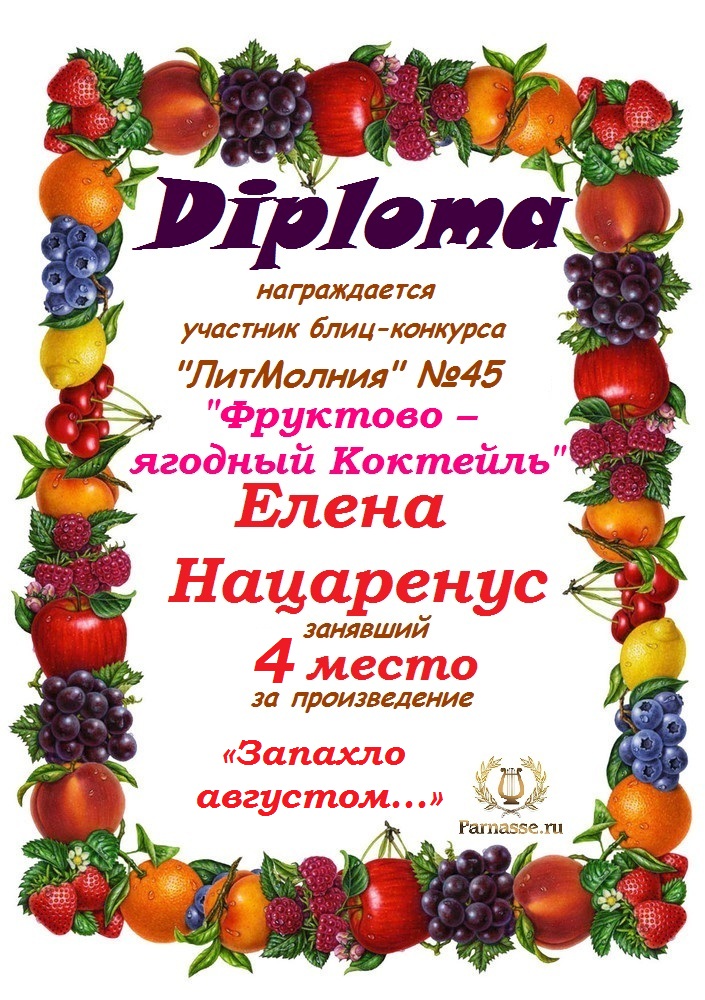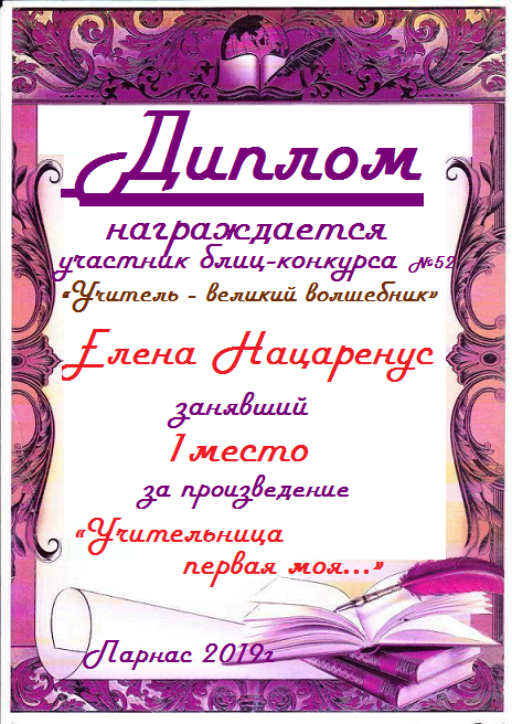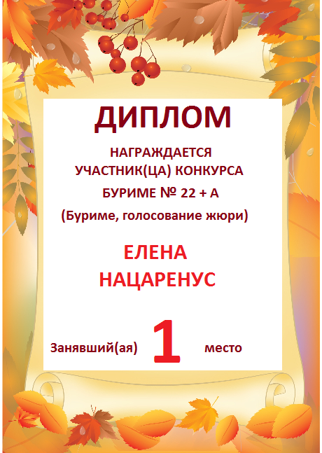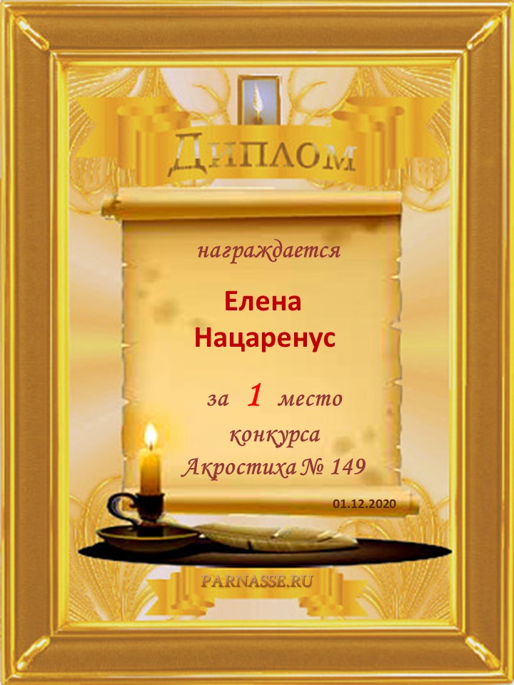 Диплом за 1 место в 140 конкурсе АКРОСТИХА (Альтернатива)! ПОЗДРАВЛЯЮ!