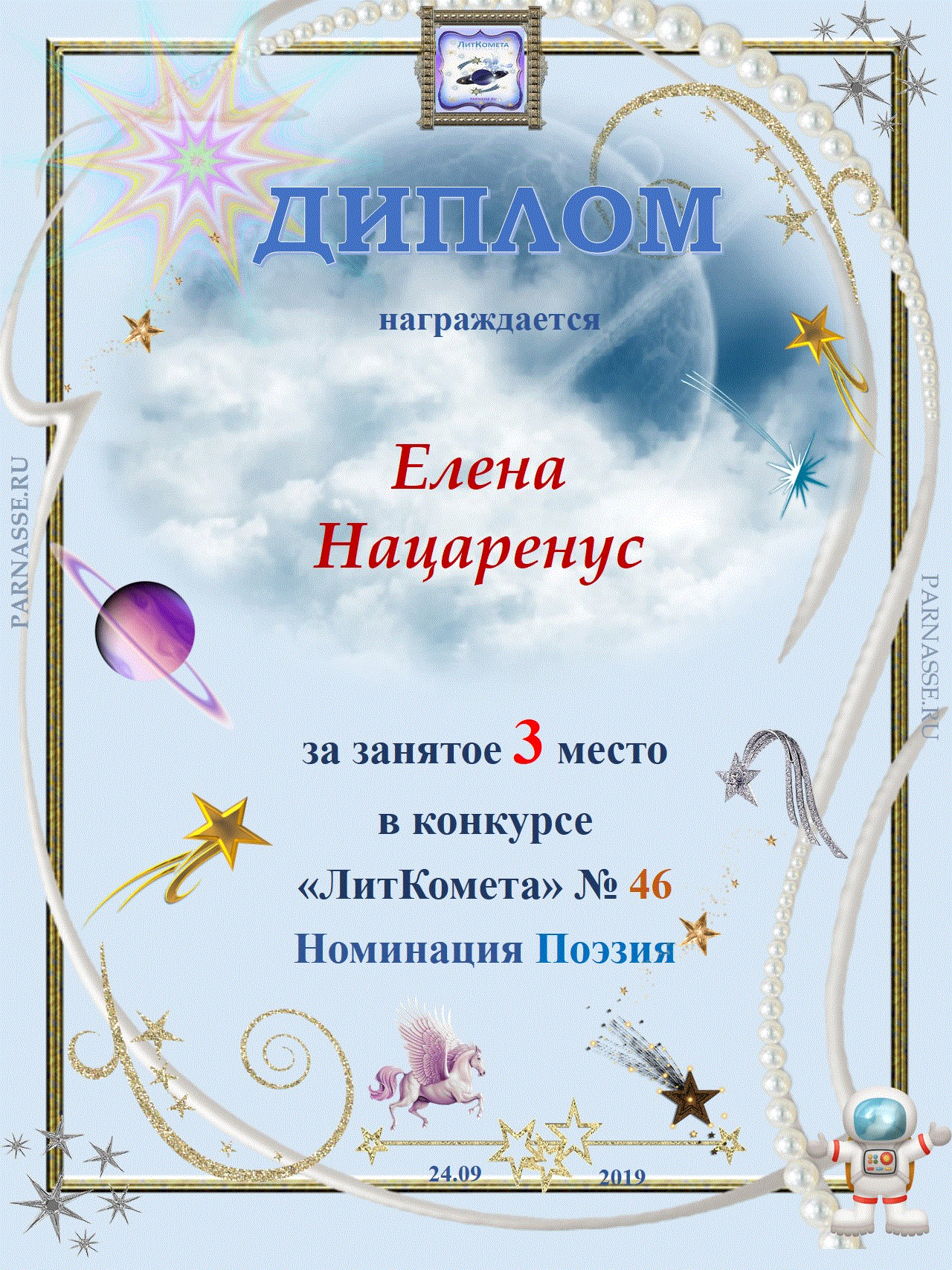 Поздравляю с занятым 2 местом в конкурсе “Литературная Комета – Полёт № 45» - Номинация Поэзия